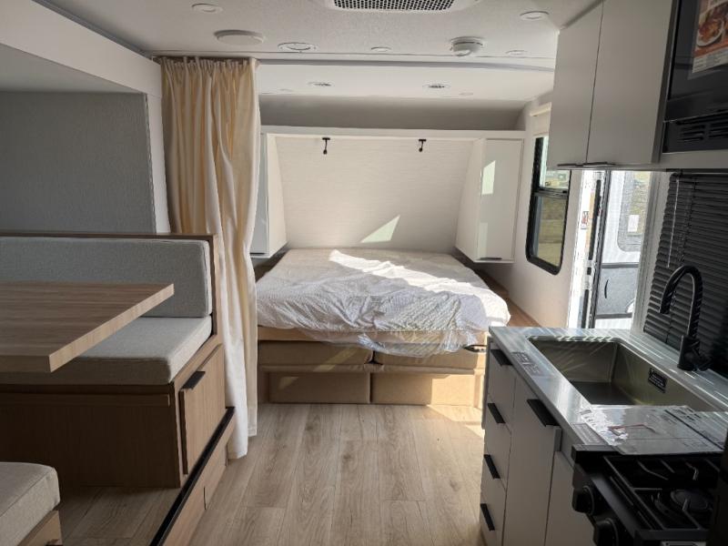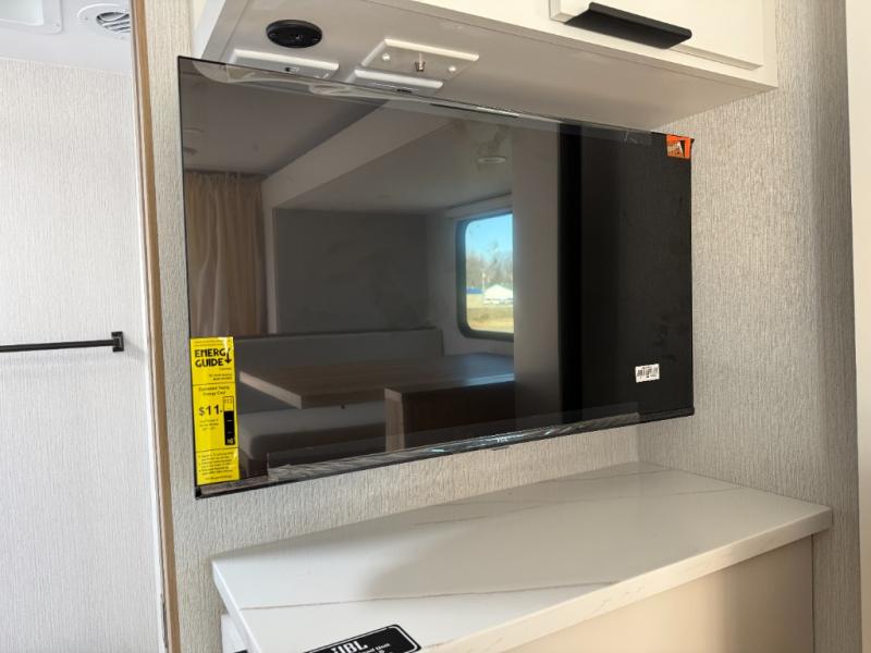 If you're looking for versatility then you need this travel trailer! Depending on the time of day you enter will determine whether you see the Murphy bed or the sofa up front. A slide out 44" x 72" booth dinette can be used for dining, playing games, and sleeping space at night. The full rear bathroom is equipped with everything you will need to freshen up each morning and features a wardrobe for your clothing and linens, and a pocket door into the bath saves space in the main room. The Smart TV is conveniently located so you can watch your favorite shows from the sofa or Murphy bed as well as the dinette, plus the pantry offers a place to store your snacks and such for easy access. The cook in your bunch will love all the amenities to make meals including the handy flip-up counter for more prep space.