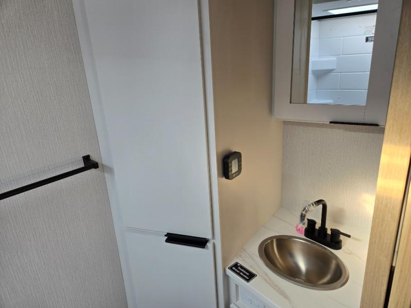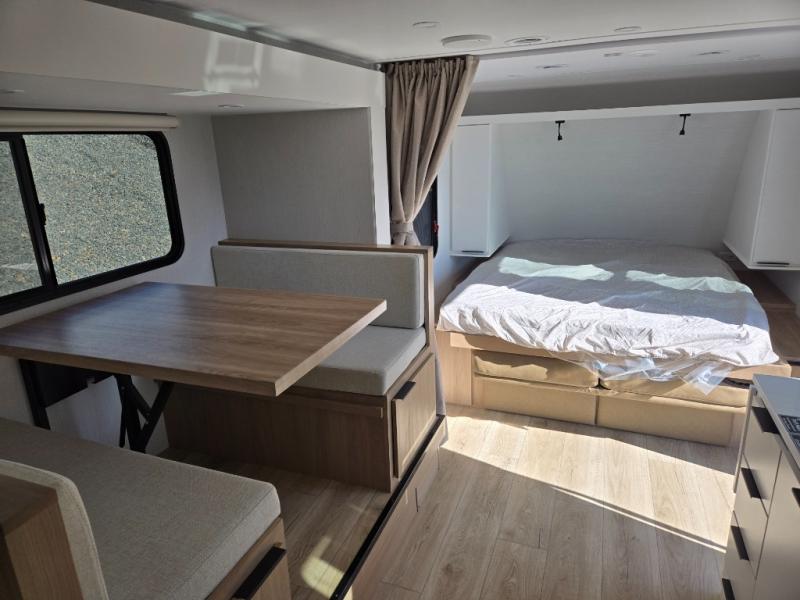 If you're looking for versatility then you need this travel trailer! Depending on the time of day you enter will determine whether you see the Murphy bed or the sofa up front. A slide out 44" x 72" booth dinette can be used for dining, playing games, and sleeping space at night. The full rear bathroom is equipped with everything you will need to freshen up each morning and features a wardrobe for your clothing and linens, and a pocket door into the bath saves space in the main room. The Smart TV is conveniently located so you can watch your favorite shows from the sofa or Murphy bed as well as the dinette, plus the pantry offers a place to store your snacks and such for easy access. The cook in your bunch will love all the amenities to make meals including the handy flip-up counter for more prep space.