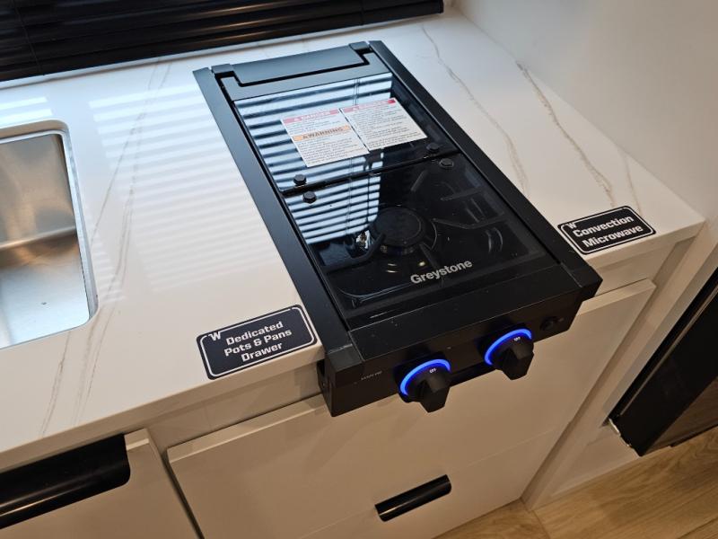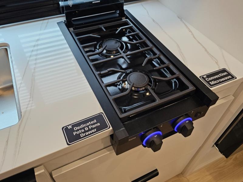 Spacious galley with sink, cooktop, and convection microwave oven