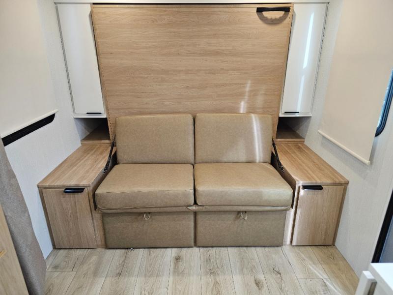 Front Murphy bed easily converts from a sofa during the day to a comfortable sleeping space at night
