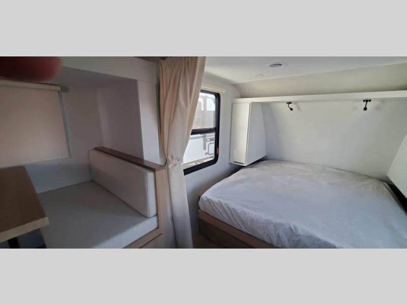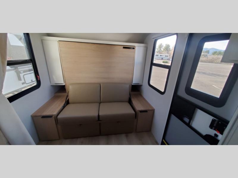 If you're looking for versatility then you need this travel trailer! Depending on the time of day you enter will determine whether you see the Murphy bed or the sofa up front. A slide out 44" x 72" booth dinette can be used for dining, playing games, and sleeping space at night. The full rear bathroom is equipped with everything you will need to freshen up each morning and features a wardrobe for your clothing and linens, and a pocket door into the bath saves space in the main room. The Smart TV is conveniently located so you can watch your favorite shows from the sofa or Murphy bed as well as the dinette, plus the pantry offers a place to store your snacks and such for easy access. The cook in your bunch will love all the amenities to make meals including the handy flip-up counter for more prep space.