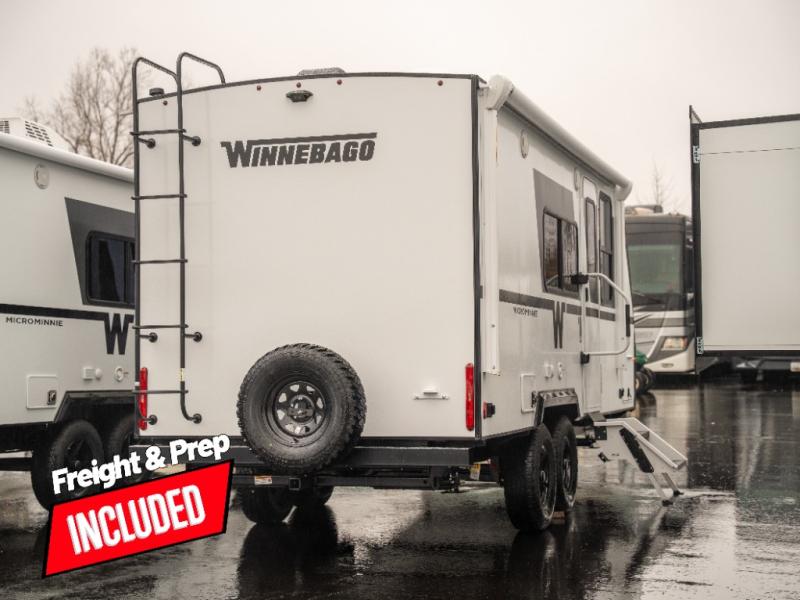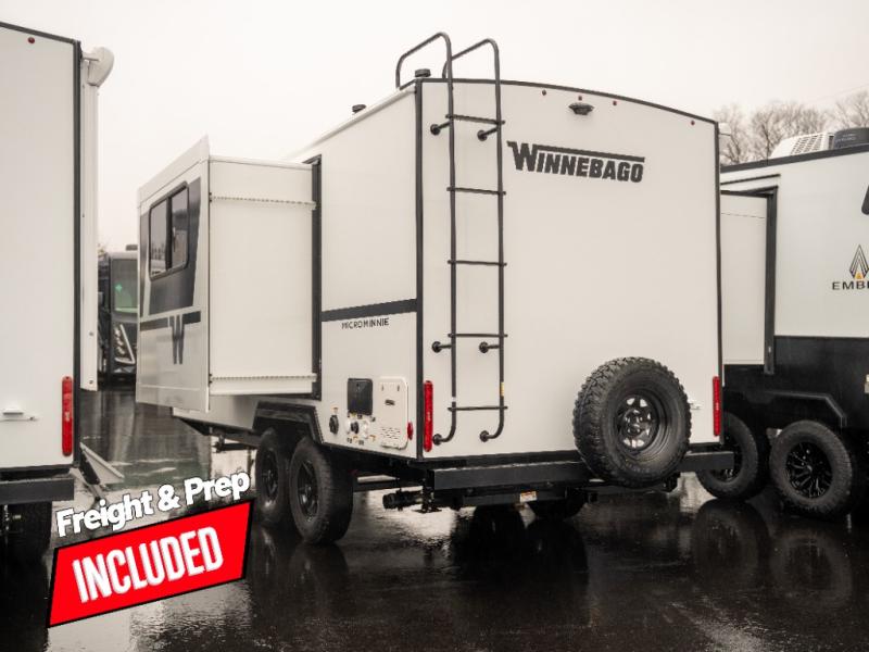 Start out on your boundless journey in one of these Winnebago Micro Minnie travel trailers! Towing is made simple with the 7' width to keep your Micro Minnie in your rear-view mirror, and even though they are compact in size, they aren't lacking in features. Each one is built with an NXG frame and fiberglass sidewalls with Azdel Onboard composite panels for added durability, plus dual Dexter TORFLEX torsion axles for smooth towing. There are also Goodyear Wrangle tires, power stabilizer jacks, a fully walkable roof and many more exterior conveniences. A 200-watt solar panel and Winnebago all-in-one control panel will provide off-grid capabilities and let you stay in control of your trailer's functions. Inside, you'll enjoy the flush mount ceiling lights, full-overlay European-style cabinetry, and JBL premium sound interior speakers, plus there is a tankless water heater to ensure your comfort!