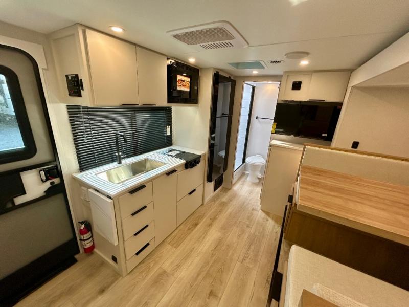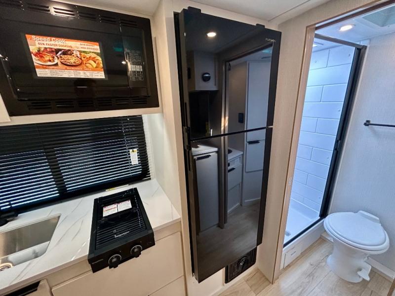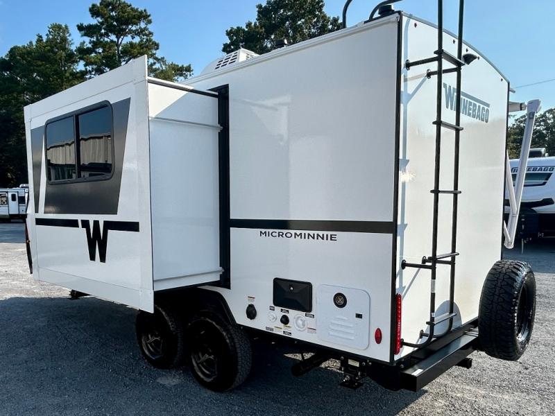 Start out on your boundless journey in one of these Winnebago Micro Minnie travel trailers! Towing is made simple with the 7' width to keep your Micro Minnie in your rear-view mirror. They don't lack in features either although they are compact in size. The spacious galley including a sink, refrigerator, a cooktop, and even a convection microwave oven allows you to cook without compromise. You will not only enjoy the entertainment found indoors with a Smart TV, a JBL premium sound system and Aura Cube high performance mechless media center, but outdoors you will also enjoy the JBL premium speakers and a power awning with LED lighting. Each model also comes with flexible exterior storage to make packing quick and easy, a 200-watt solar panel for off-grid camping, and Dexter TORFLEX torsion stub axles for smooth towing!