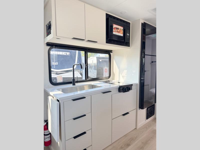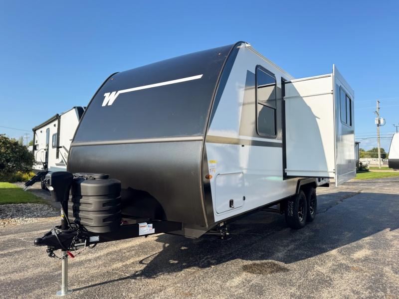 Start out on your boundless journey in one of these Winnebago Micro Minnie travel trailers! Towing is made simple with the 7' width to keep your Micro Minnie in your rear-view mirror. They don't lack in features either although they are compact in size. The spacious galley including a sink, refrigerator, a cooktop, and even a convection microwave oven allows you to cook without compromise. You will not only enjoy the entertainment found indoors with a Smart TV, a JBL premium sound system and Aura Cube high performance mechless media center, but outdoors you will also enjoy the JBL premium speakers and a power awning with LED lighting. Each model also comes with flexible exterior storage to make packing quick and easy, a 200-watt solar panel for off-grid camping, and Dexter TORFLEX torsion stub axles for smooth towing!