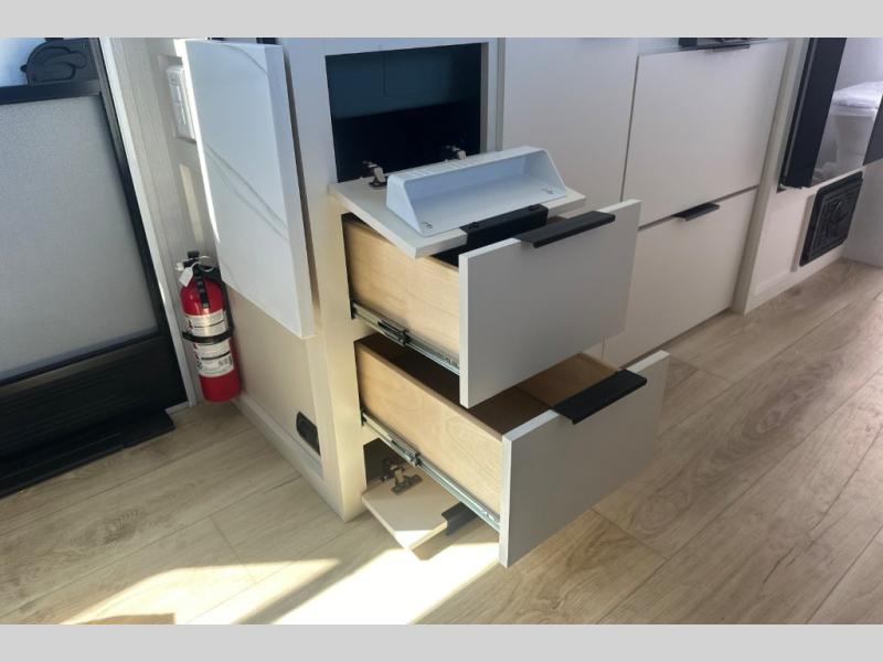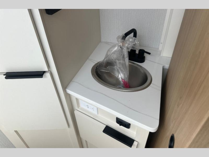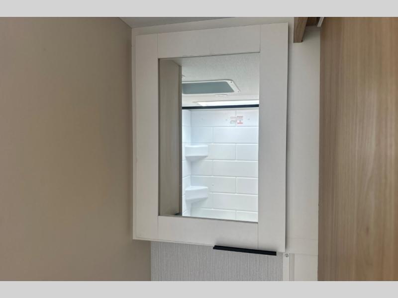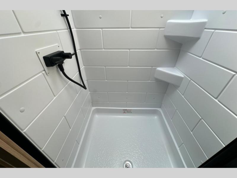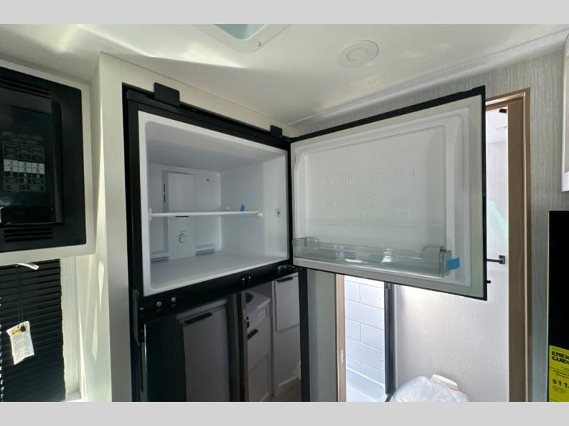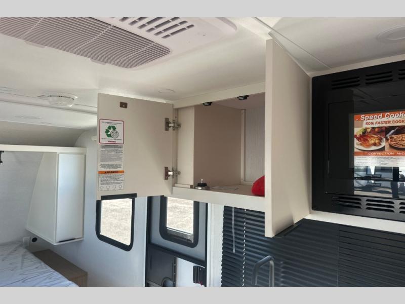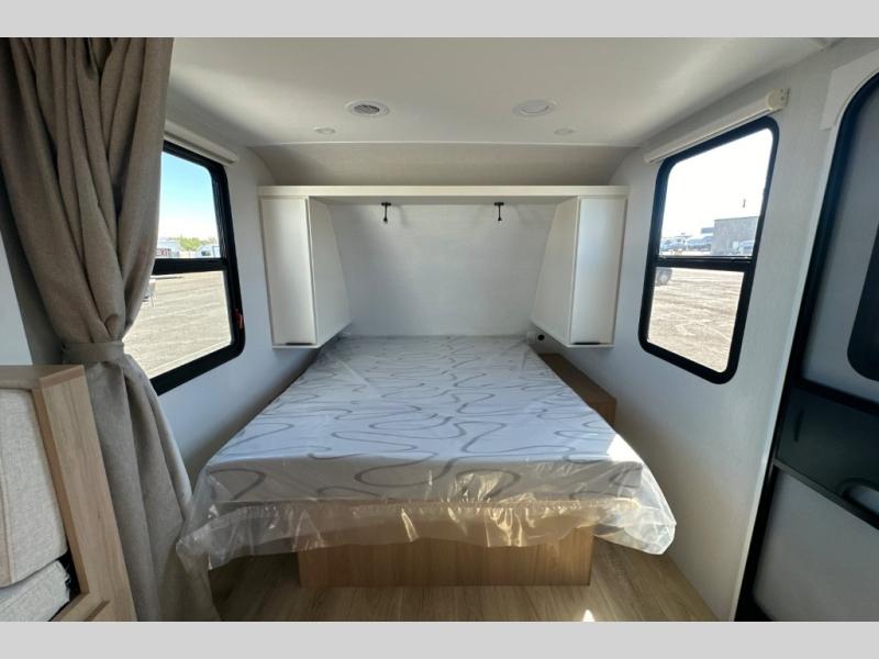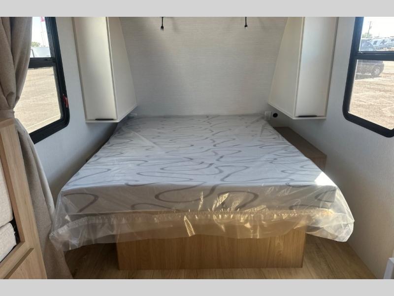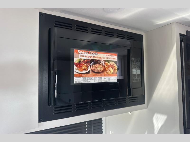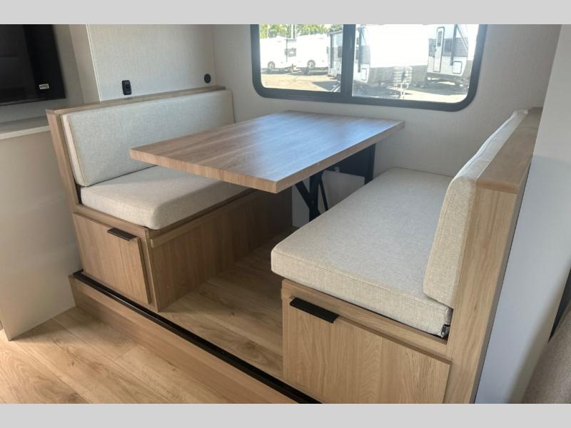 Pack your bags and head to the campground with this travel trailer! You will love all that it has to offer from the full rear bathroom to the front 60" x 74" RV queen-size bed with dual wardrobes on either side of the bed. The 44" x 72" booth dinette slide is not only a great place to enjoy your meals at or play card games, but it can also be transformed into an extra sleeping space if you want to bring along a guest. When you don't feel like making dinner, you can easily pop in some leftovers or a bag of popcorn into the convection microwave and relax while you watch a movie on the Smart TV!