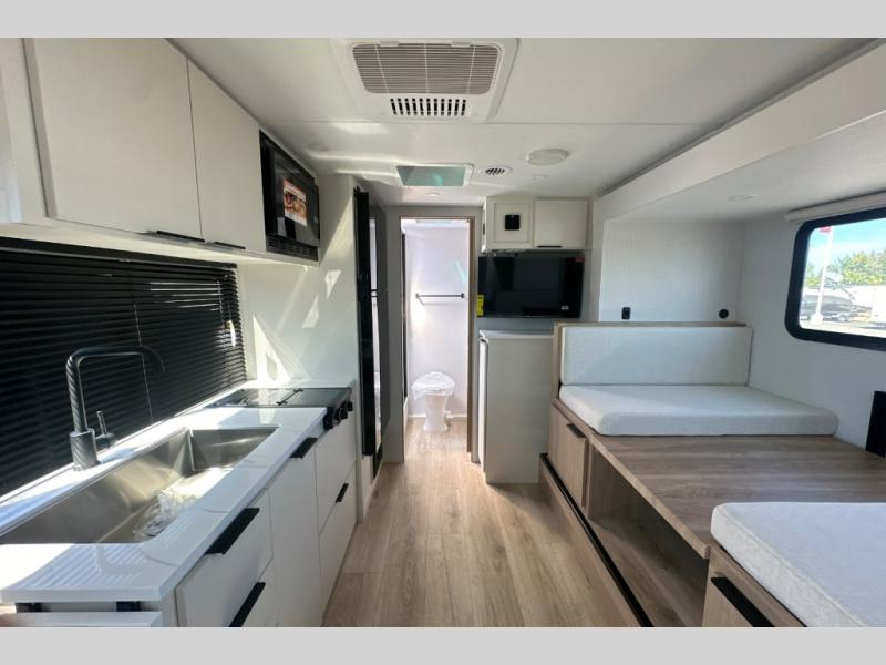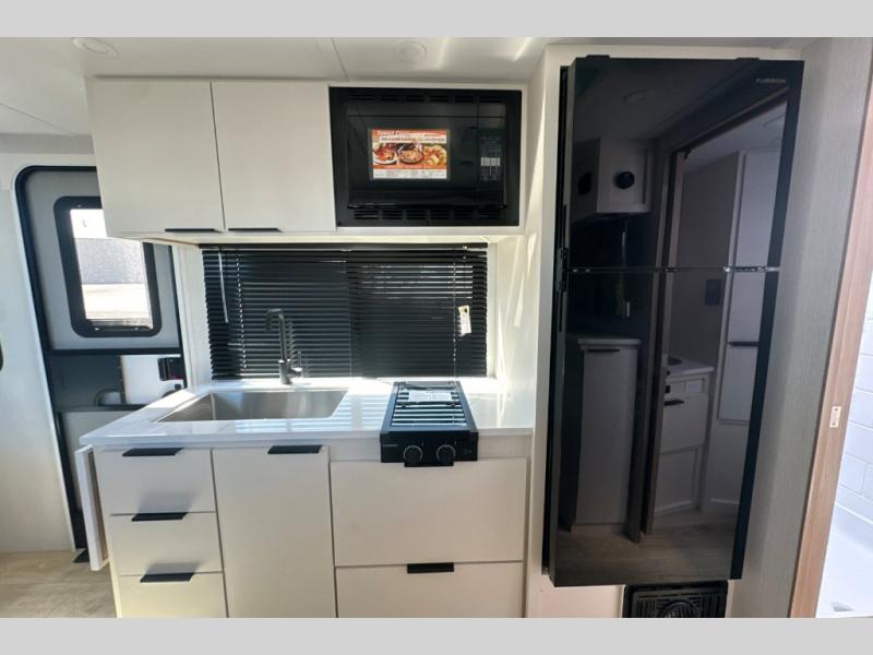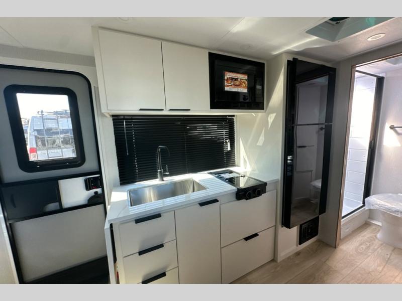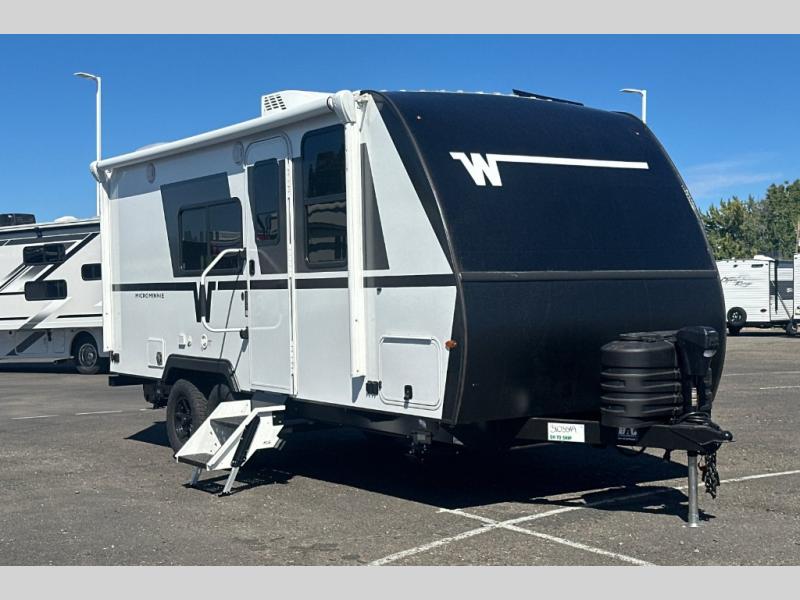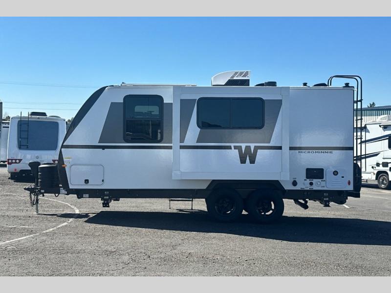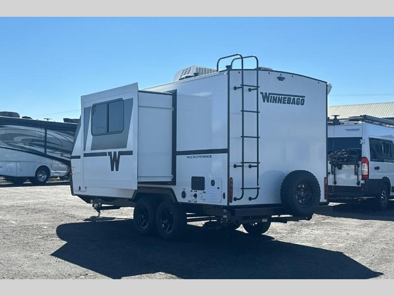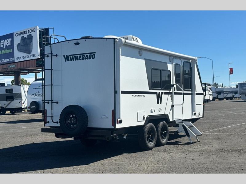 Start out on your boundless journey in one of these Winnebago Industries Towables Micro Minnie travel trailers! Towing is made simple with the 7' width to keep your Micro Minnie in your rear-view mirror. They don't lack in features either although they are compact in size. The spacious galley including a sink, refrigerator, a cooktop, and even a convection microwave oven allows you to cook without compromise. You will not only enjoy the entertainment found indoors with a Smart TV, a JBL premium sound system and Aura Cube high performance mechless media center, but outdoors you will also enjoy the JBL premium speakers and a power awning with LED lighting. Each model also comes with flexible exterior storage to make packing quick and easy, a 200-watt solar panel for off-grid camping, and Dexter TORFLEX torsion stub axles for smooth towing!
