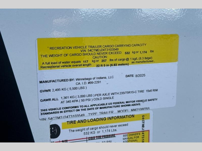 New 2026 Winnebago Micro Minnie 2108FBS Travel Trailer