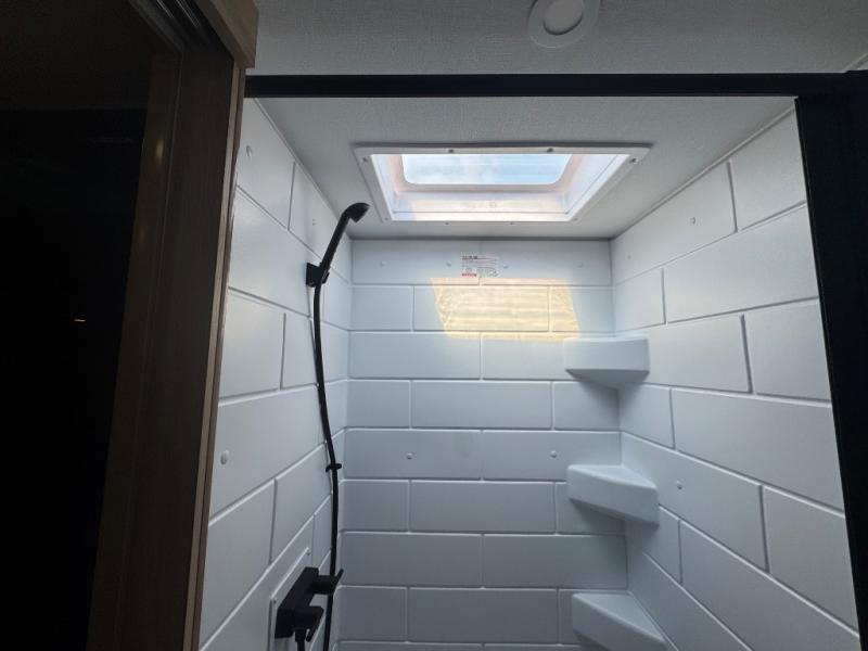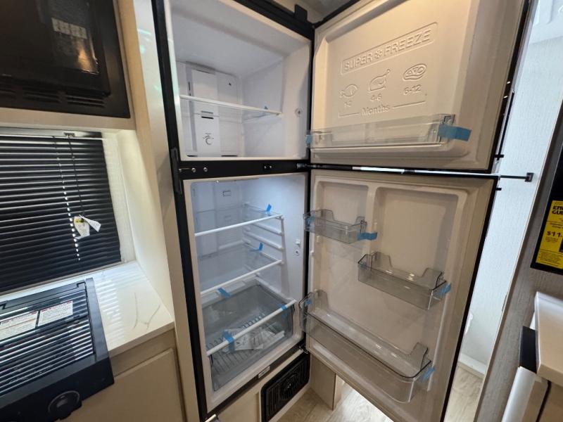 Pack your bags and head to the campground with this travel trailer! You will love all that it has to offer from the full rear bathroom to the front 60" x 74" RV queen-size bed with dual wardrobes on either side of the bed. The 44" x 72" booth dinette slide is not only a great place to enjoy your meals at or play card games, but it can also be transformed into an extra sleeping space if you want to bring along a guest. When you don't feel like making dinner, you can easily pop in some leftovers or a bag of popcorn into the convection microwave and relax while you watch a movie on the Smart TV!