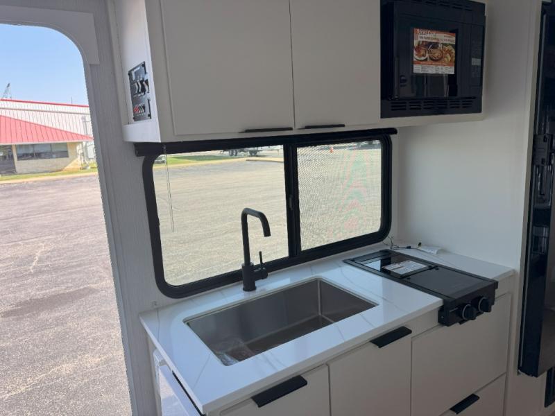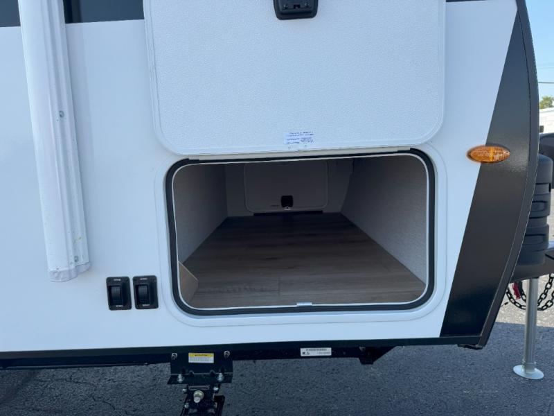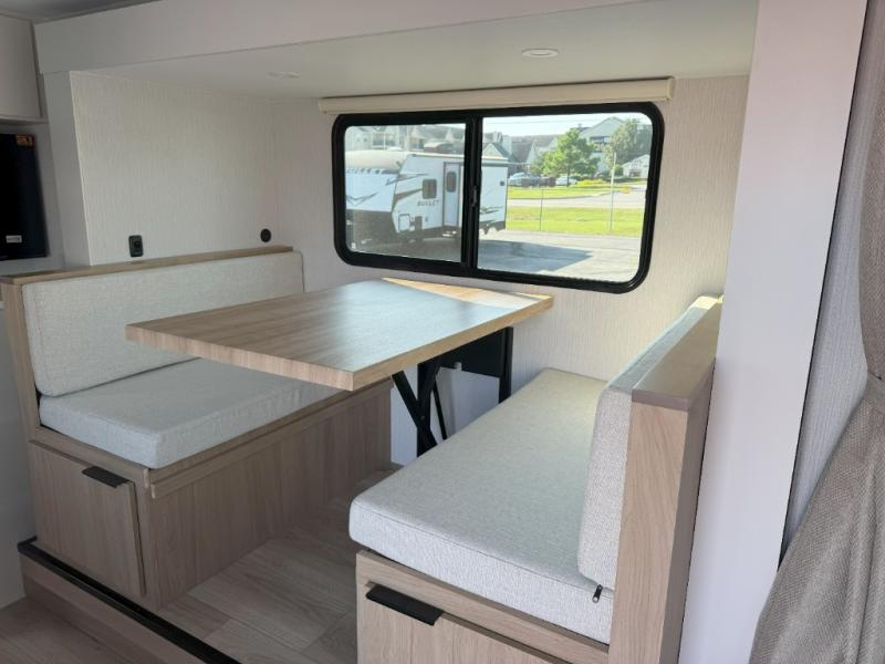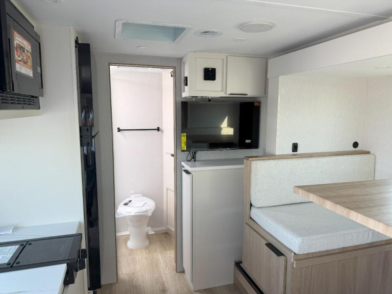 Pack your bags and head to the campground with this travel trailer! You will love all that it has to offer from the full rear bathroom to the front 60" x 74" RV queen-size bed with dual wardrobes on either side of the bed. The 44" x 72" booth dinette slide is not only a great place to enjoy your meals at or play card games, but it can also be transformed into an extra sleeping space if you want to bring along a guest. When you don't feel like making dinner, you can easily pop in some leftovers or a bag of popcorn into the convection microwave and relax while you watch a movie on the Smart TV!