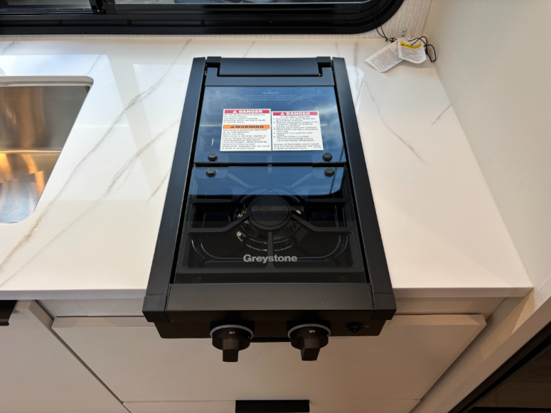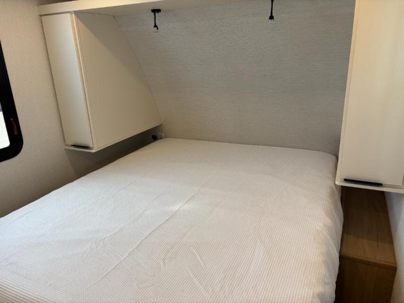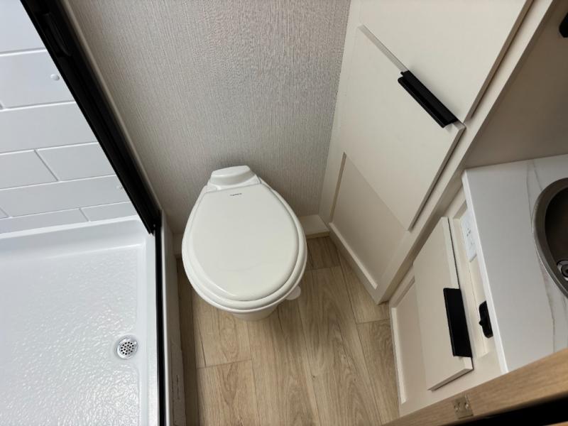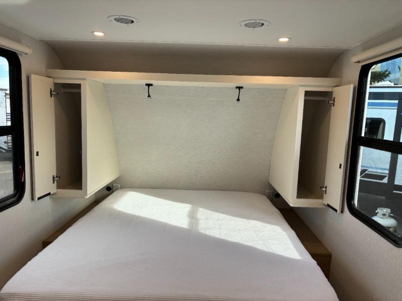 Pack your bags and head to the campground with this travel trailer! You will love all that it has to offer from the full rear bathroom to the front 60" x 74" RV queen-size bed with dual wardrobes on either side of the bed. The 44" x 72" booth dinette slide is not only a great place to enjoy your meals at or play card games, but it can also be transformed into an extra sleeping space if you want to bring along a guest. When you don't feel like making dinner, you can easily pop in some leftovers or a bag of popcorn into the convection microwave and relax while you watch a movie on the Smart TV!