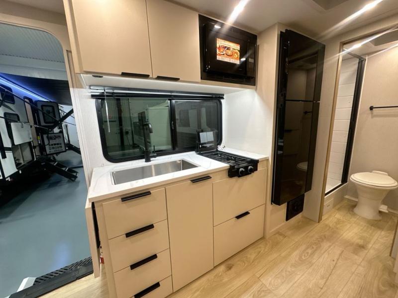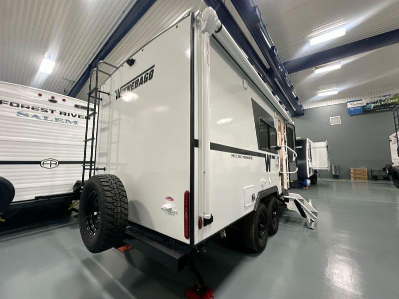 Start out on your boundless journey in one of these Winnebago Micro Minnie travel trailers! Towing is made simple with the 7' width to keep your Micro Minnie in your rear-view mirror. They don't lack in features either although they are compact in size. The spacious galley including a sink, refrigerator, a cooktop, and even a convection microwave oven allows you to cook without compromise. You will not only enjoy the entertainment found indoors with a Smart TV, a JBL premium sound system and Aura Cube high performance mechless media center, but outdoors you will also enjoy the JBL premium speakers and a power awning with LED lighting. Each model also comes with flexible exterior storage to make packing quick and easy, a 200-watt solar panel for off-grid camping, and Dexter TORFLEX torsion stub axles for smooth towing!