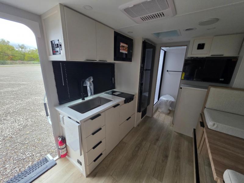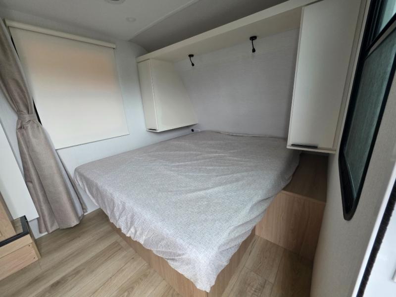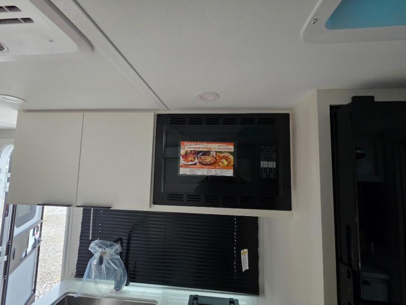 Pack your bags and head to the campground with this travel trailer! You will love all that it has to offer from the full rear bathroom to the front 60" x 74" RV queen-size bed with dual wardrobes on either side of the bed. The 44" x 72" booth dinette slide is not only a great place to enjoy your meals at or play card games, but it can also be transformed into an extra sleeping space if you want to bring along a guest. When you don't feel like making dinner, you can easily pop in some leftovers or a bag of popcorn into the convection microwave and relax while you watch a movie on the Smart TV!