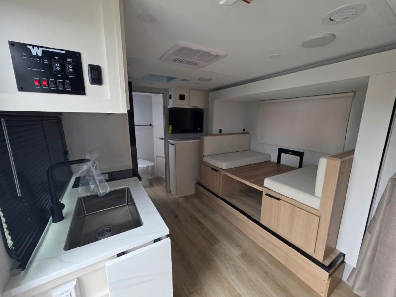 Start out on your boundless journey in one of these Winnebago Micro Minnie travel trailers! Towing is made simple with the 7' width to keep your Micro Minnie in your rear-view mirror. They don't lack in features either although they are compact in size. The spacious galley including a sink, refrigerator, a cooktop, and even a convection microwave oven allows you to cook without compromise. You will not only enjoy the entertainment found indoors with a Smart TV, a JBL premium sound system and Aura Cube high performance mechless media center, but outdoors you will also enjoy the JBL premium speakers and a power awning with LED lighting. Each model also comes with flexible exterior storage to make packing quick and easy, a 200-watt solar panel for off-grid camping, and Dexter TORFLEX torsion stub axles for smooth towing!