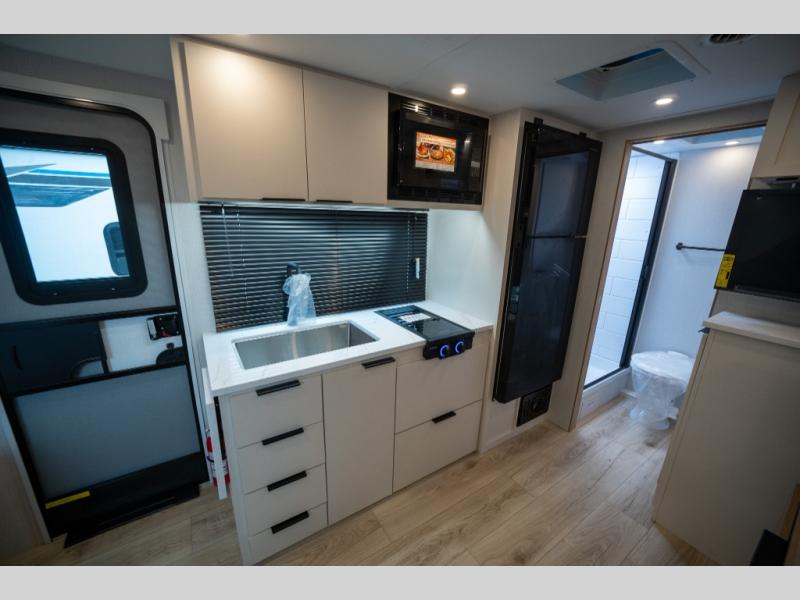 Start out on your boundless journey in one of these Winnebago Micro Minnie travel trailers! Towing is made simple with the 7' width to keep your Micro Minnie in your rear-view mirror. They don't lack in features either although they are compact in size. The spacious galley including a sink, refrigerator, a cooktop, and even a convection microwave oven allows you to cook without compromise. You will not only enjoy the entertainment found indoors with a Smart TV, a JBL premium sound system and Aura Cube high performance mechless media center, but outdoors you will also enjoy the JBL premium speakers and a power awning with LED lighting. Each model also comes with flexible exterior storage to make packing quick and easy, a 200-watt solar panel for off-grid camping, and Dexter TORFLEX torsion stub axles for smooth towing!