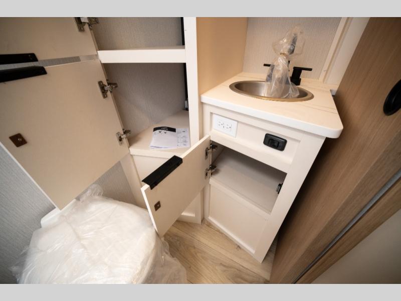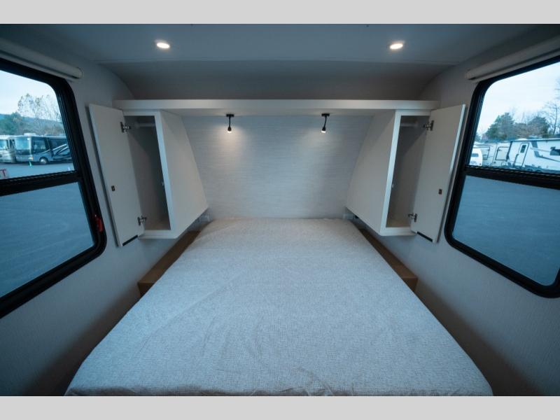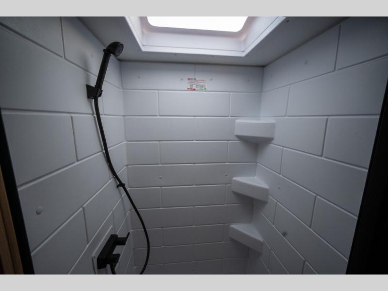 Pack your bags and head to the campground with this travel trailer! You will love all that it has to offer from the full rear bathroom to the front 60" x 74" RV queen-size bed with dual wardrobes on either side of the bed. The 44" x 72" booth dinette slide is not only a great place to enjoy your meals at or play card games, but it can also be transformed into an extra sleeping space if you want to bring along a guest. When you don't feel like making dinner, you can easily pop in some leftovers or a bag of popcorn into the convection microwave and relax while you watch a movie on the Smart TV!