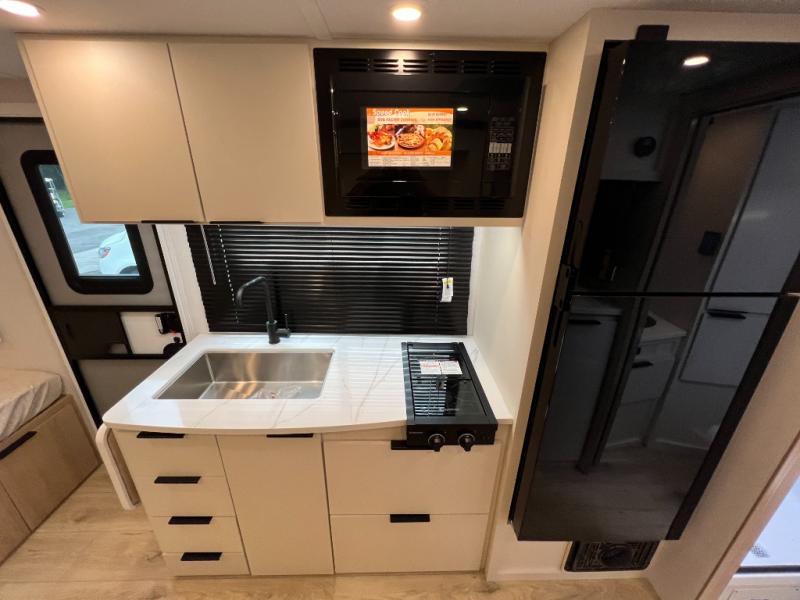 Start out on your boundless journey in one of these Winnebago Micro Minnie travel trailers! Towing is made simple with the 7' width to keep your Micro Minnie in your rear-view mirror. They don't lack in features either although they are compact in size. The spacious galley including a sink, refrigerator, a cooktop, and even a convection microwave oven allows you to cook without compromise. You will not only enjoy the entertainment found indoors with a Smart TV, a JBL premium sound system and Aura Cube high performance mechless media center, but outdoors you will also enjoy the JBL premium speakers and a power awning with LED lighting. Each model also comes with flexible exterior storage to make packing quick and easy, a 200-watt solar panel for off-grid camping, and Dexter TORFLEX torsion stub axles for smooth towing!