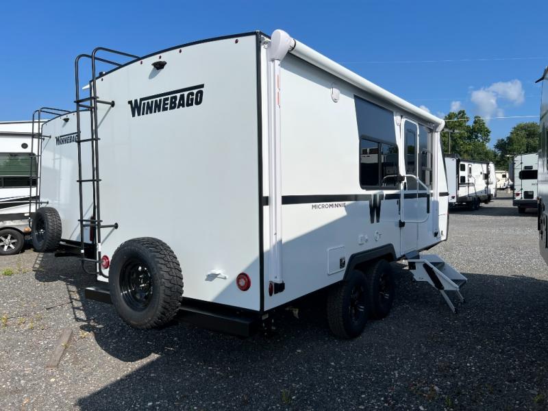Start out on your boundless journey in one of these Winnebago Micro Minnie travel trailers! Towing is made simple with the 7' width to keep your Micro Minnie in your rear-view mirror. They don't lack in features either although they are compact in size. The spacious galley including a sink, refrigerator, a cooktop, and even a convection microwave oven allows you to cook without compromise. You will not only enjoy the entertainment found indoors with a Smart TV, a JBL premium sound system and Aura Cube high performance mechless media center, but outdoors you will also enjoy the JBL premium speakers and a power awning with LED lighting. Each model also comes with flexible exterior storage to make packing quick and easy, a 200-watt solar panel for off-grid camping, and Dexter TORFLEX torsion stub axles for smooth towing!