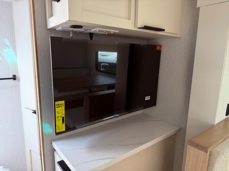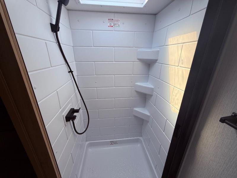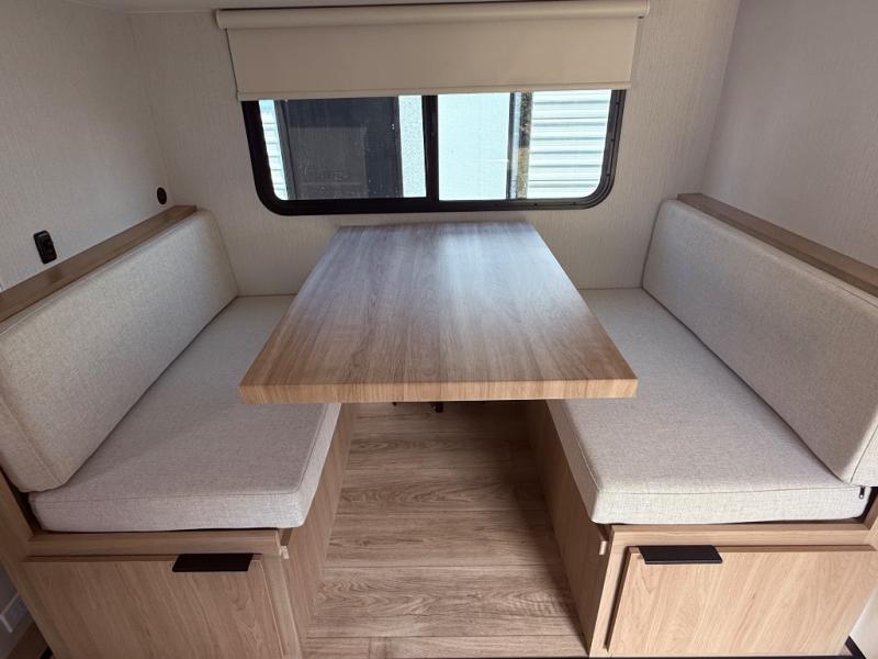 Come see just how accommodating this travel trailer can be! The two 32" x 74" twin beds up front have a nightstand in between them and a divider curtain to draw, plus they can convert into one 74" x 82" king-size bed. The 44" x 72" booth dinette slide can also convert into an extra sleeping space when you're not using it for meal time or playing games. Everyone can get squeaky clean in the full rear bathroom, and the wardrobe is a convenient place to store your linens and extra clothes. Grab a snack from the kitchen pantry or pop a bag of popcorn in the convection microwave then watch a movie on the Smart TV or head outdoors and relax underneath the power awning!