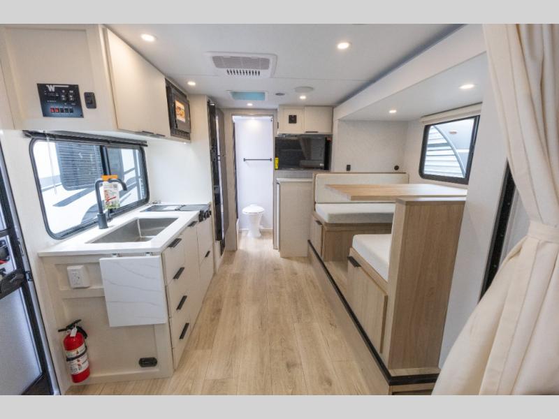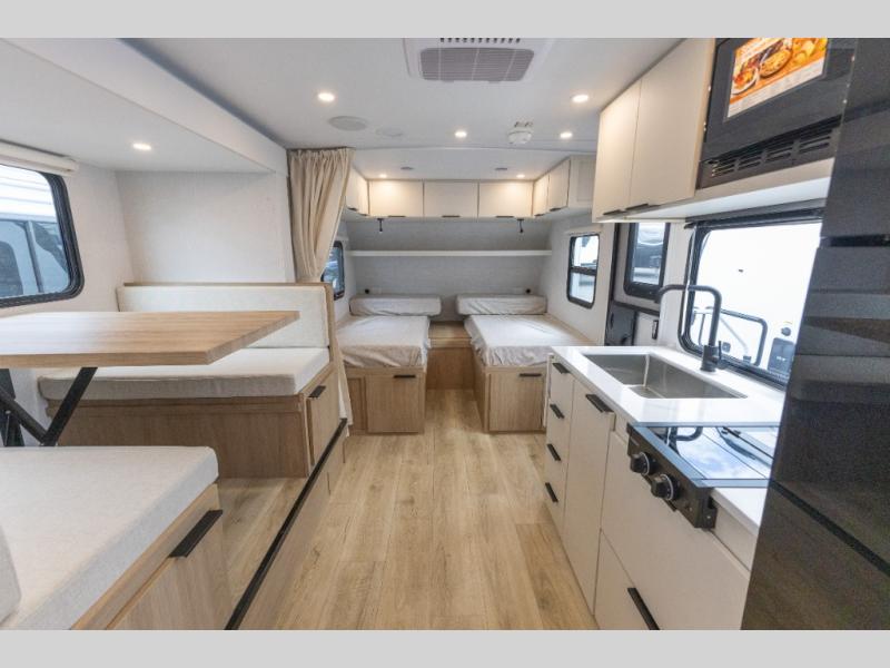 Start out on your boundless journey in one of these Winnebago Micro Minnie travel trailers! Towing is made simple with the 7' width to keep your Micro Minnie in your rear-view mirror. They don't lack in features either although they are compact in size. The spacious galley including a sink, refrigerator, a cooktop, and even a convection microwave oven allows you to cook without compromise. You will not only enjoy the entertainment found indoors with a Smart TV, a JBL premium sound system and Aura Cube high performance mechless media center, but outdoors you will also enjoy the JBL premium speakers and a power awning with LED lighting. Each model also comes with flexible exterior storage to make packing quick and easy, a 200-watt solar panel for off-grid camping, and Dexter TORFLEX torsion stub axles for smooth towing!