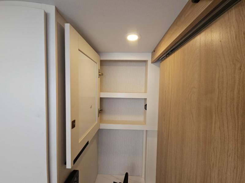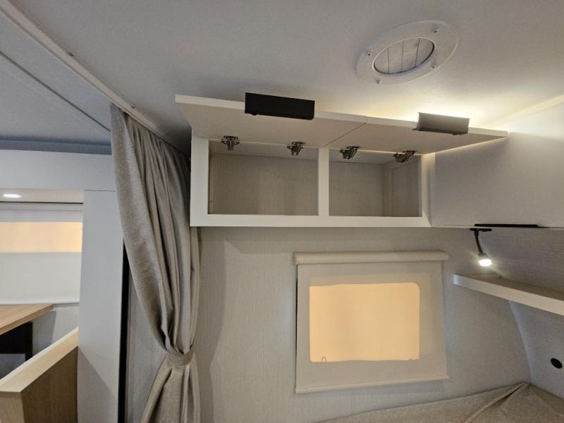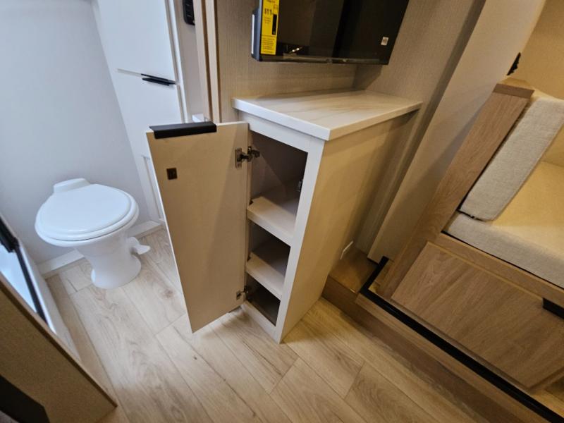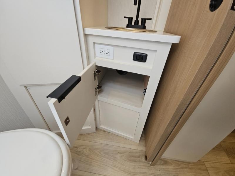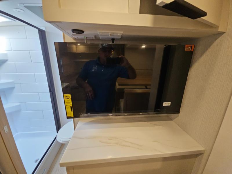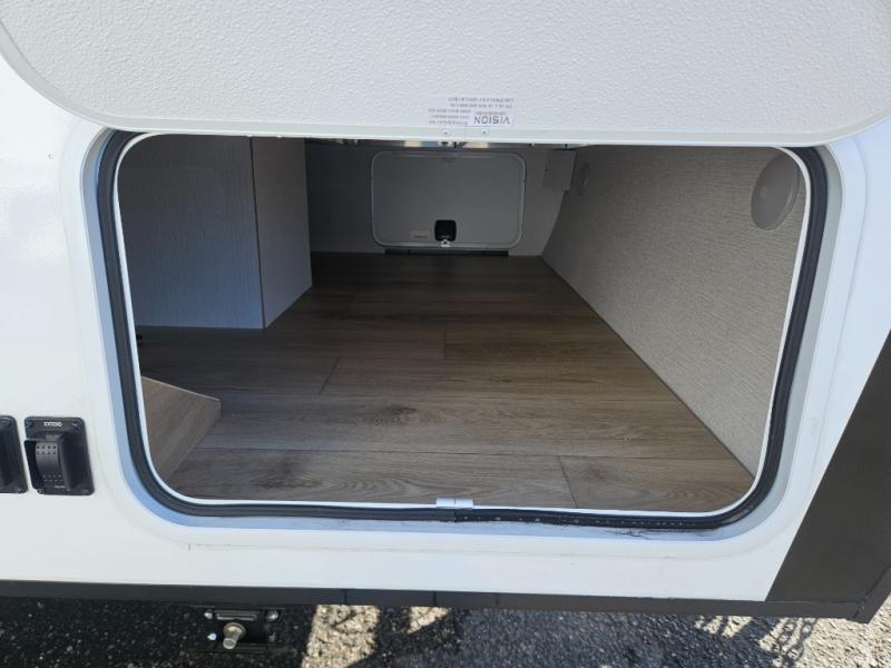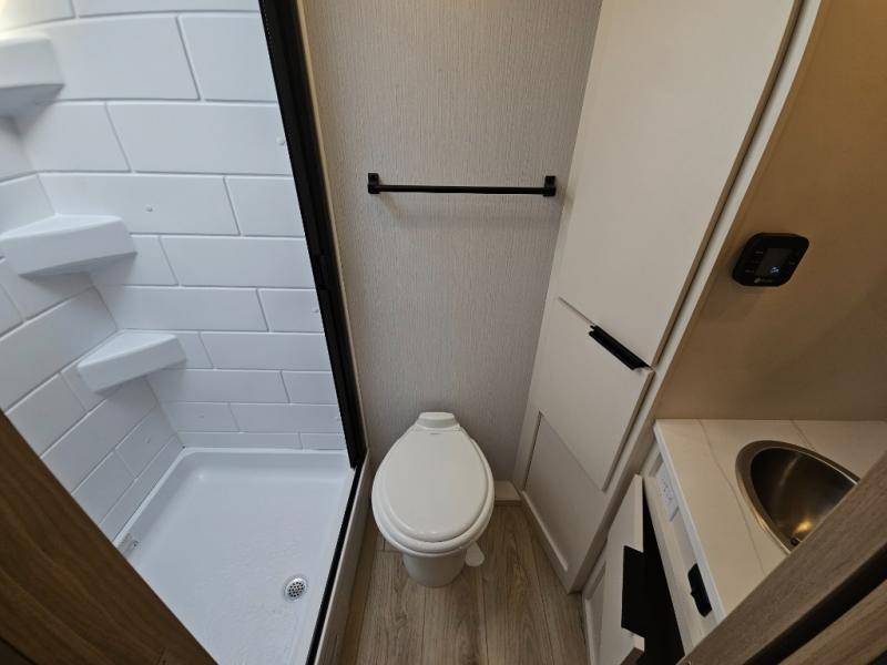 Come see just how accommodating this travel trailer can be! The two 32" x 74" twin beds up front have a nightstand in between them and a divider curtain to draw, plus they can convert into one 74" x 82" king-size bed. The 44" x 72" booth dinette slide can also convert into an extra sleeping space when you're not using it for meal time or playing games. Everyone can get squeaky clean in the full rear bathroom, and the wardrobe is a convenient place to store your linens and extra clothes. Grab a snack from the kitchen pantry or pop a bag of popcorn in the convection microwave then watch a movie on the Smart TV or head outdoors and relax underneath the power awning!