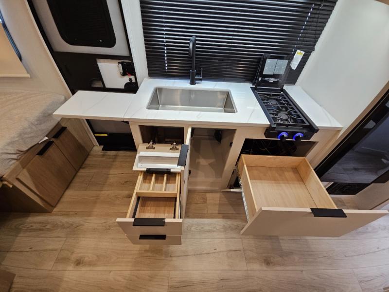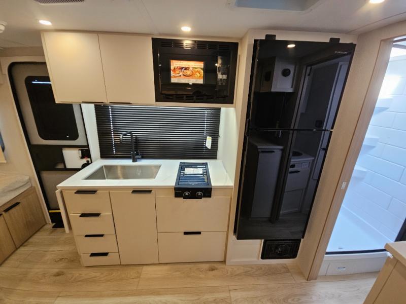 Start out on your boundless journey in one of these Winnebago Micro Minnie travel trailers! Towing is made simple with the 7' width to keep your Micro Minnie in your rear-view mirror. They don't lack in features either although they are compact in size. The spacious galley including a sink, refrigerator, a cooktop, and even a convection microwave oven allows you to cook without compromise. You will not only enjoy the entertainment found indoors with a Smart TV, a JBL premium sound system and Aura Cube high performance mechless media center, but outdoors you will also enjoy the JBL premium speakers and a power awning with LED lighting. Each model also comes with flexible exterior storage to make packing quick and easy, a 200-watt solar panel for off-grid camping, and Dexter TORFLEX torsion stub axles for smooth towing!