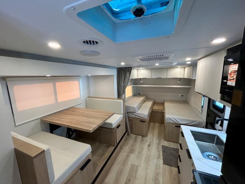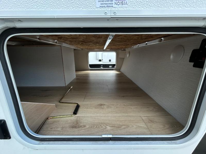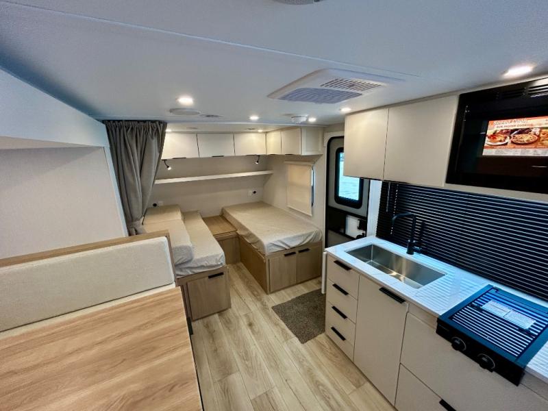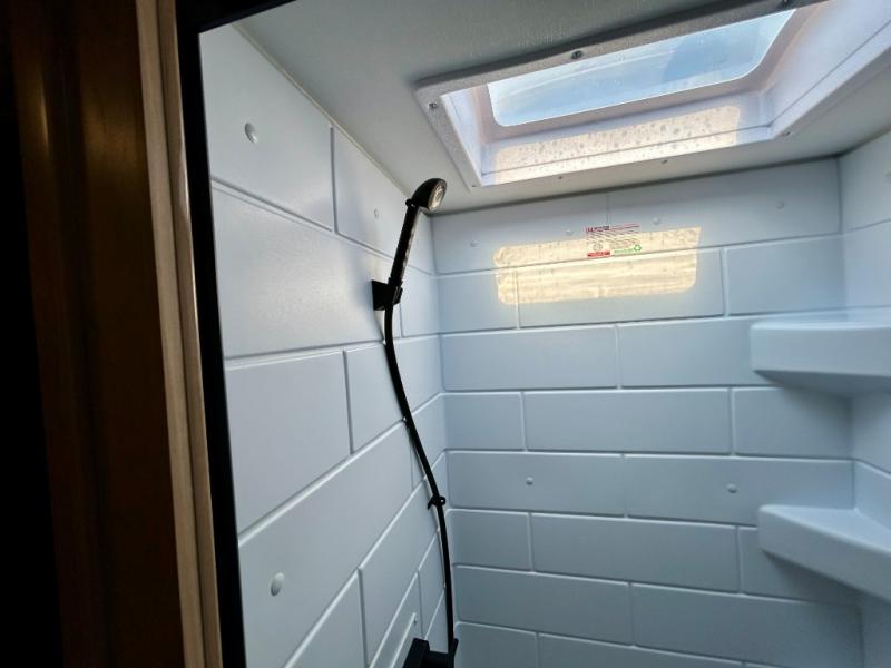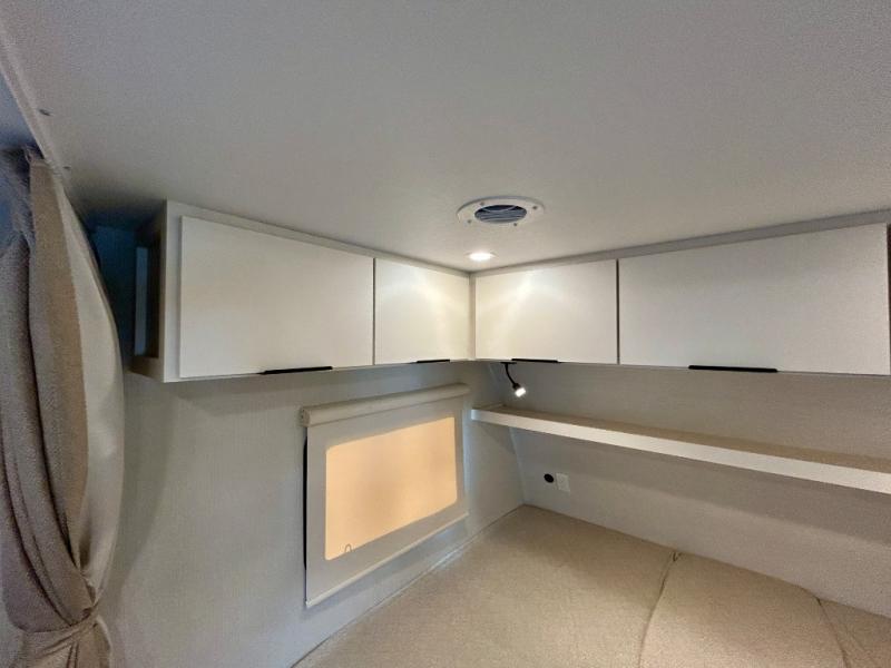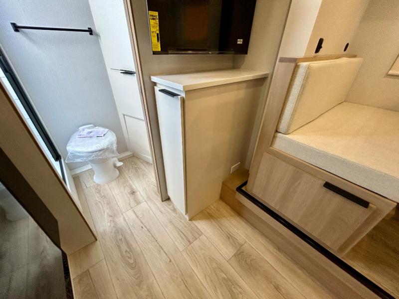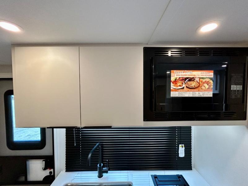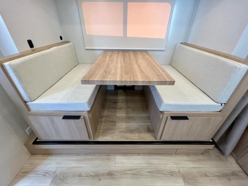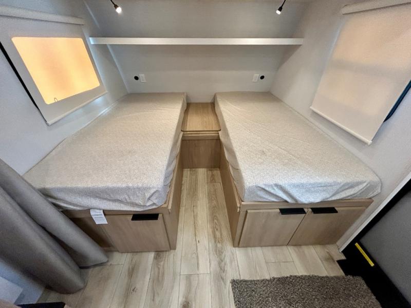 Come see just how accommodating this travel trailer can be! The two 32" x 74" twin beds up front have a nightstand in between them and a divider curtain to draw, plus they can convert into one 74" x 82" king-size bed. The 44" x 72" booth dinette slide can also convert into an extra sleeping space when you're not using it for meal time or playing games. Everyone can get squeaky clean in the full rear bathroom, and the wardrobe is a convenient place to store your linens and extra clothes. Grab a snack from the kitchen pantry or pop a bag of popcorn in the convection microwave then watch a movie on the Smart TV or head outdoors and relax underneath the power awning!