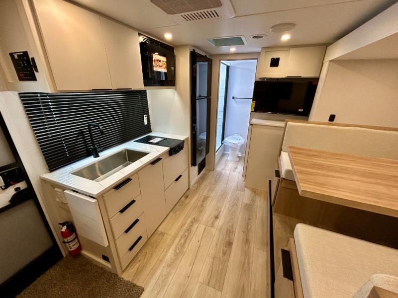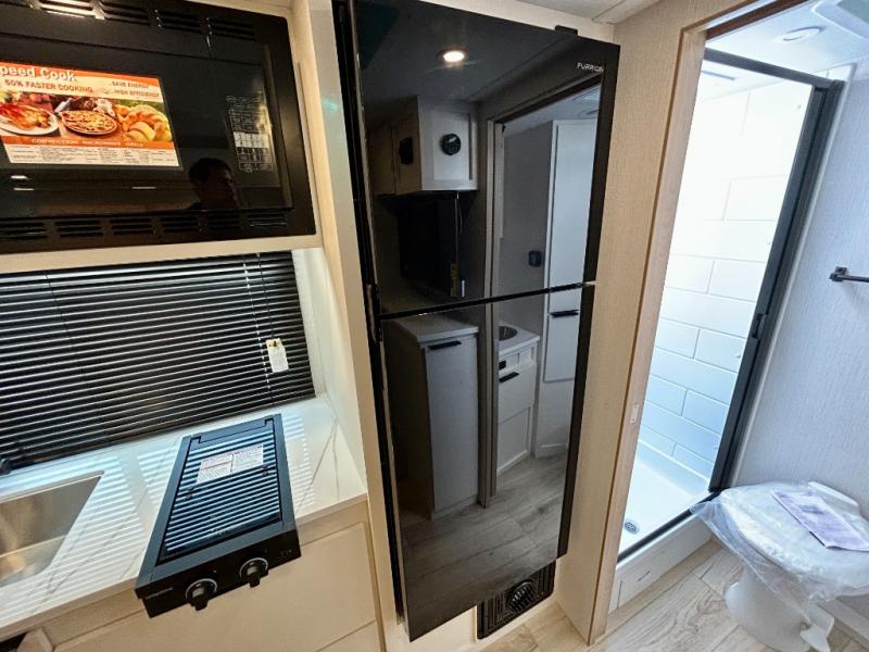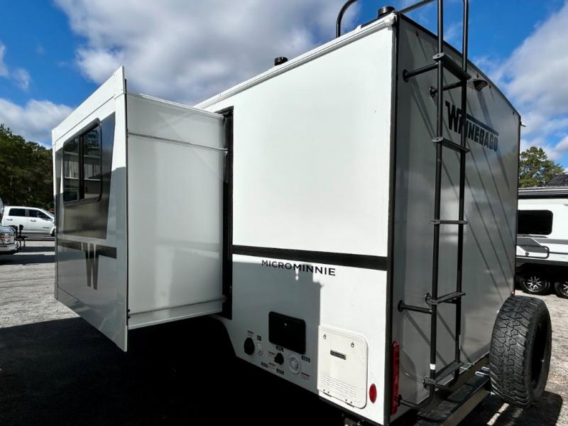 Start out on your boundless journey in one of these Winnebago Micro Minnie travel trailers! Towing is made simple with the 7' width to keep your Micro Minnie in your rear-view mirror. They don't lack in features either although they are compact in size. The spacious galley including a sink, refrigerator, a cooktop, and even a convection microwave oven allows you to cook without compromise. You will not only enjoy the entertainment found indoors with a Smart TV, a JBL premium sound system and Aura Cube high performance mechless media center, but outdoors you will also enjoy the JBL premium speakers and a power awning with LED lighting. Each model also comes with flexible exterior storage to make packing quick and easy, a 200-watt solar panel for off-grid camping, and Dexter TORFLEX torsion stub axles for smooth towing!