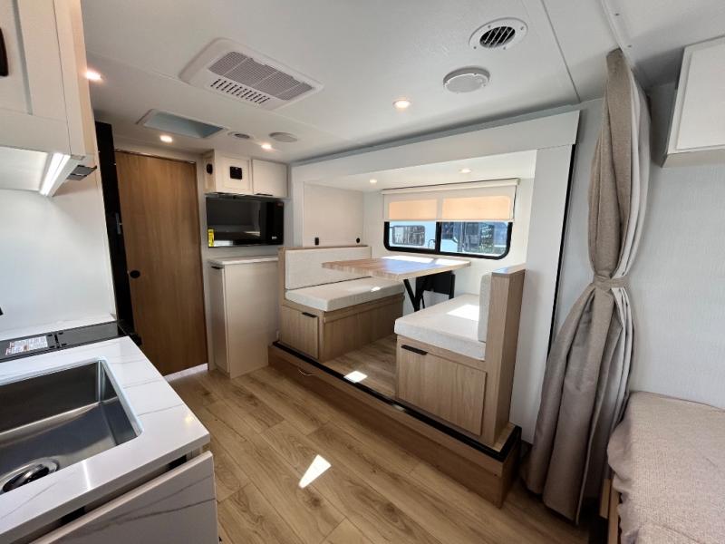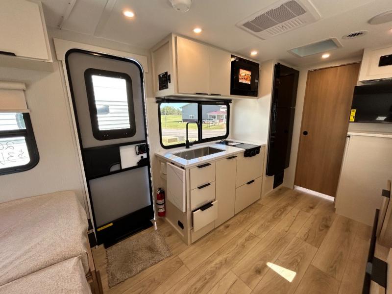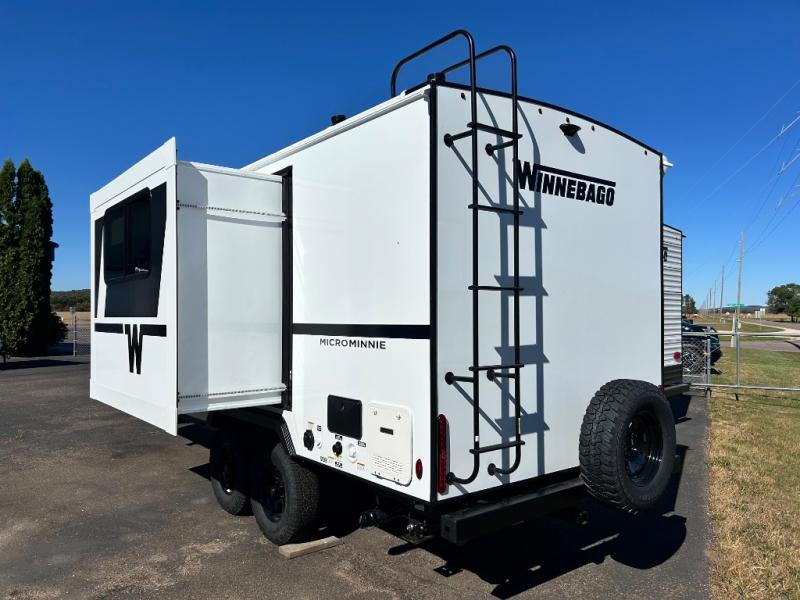 Start out on your boundless journey in one of these Winnebago Micro Minnie travel trailers! Towing is made simple with the 7' width to keep your Micro Minnie in your rear-view mirror. They don't lack in features either although they are compact in size. The spacious galley including a sink, refrigerator, a cooktop, and even a convection microwave oven allows you to cook without compromise. You will not only enjoy the entertainment found indoors with a Smart TV, a JBL premium sound system and Aura Cube high performance mechless media center, but outdoors you will also enjoy the JBL premium speakers and a power awning with LED lighting. Each model also comes with flexible exterior storage to make packing quick and easy, a 200-watt solar panel for off-grid camping, and Dexter TORFLEX torsion stub axles for smooth towing!