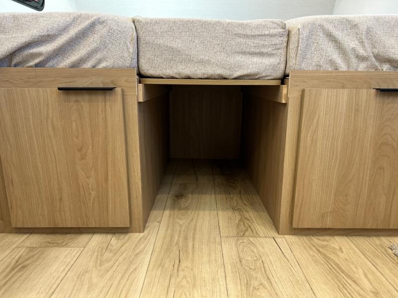 Come see just how accommodating this travel trailer can be! The two 32" x 74" twin beds up front have a nightstand in between them and a divider curtain to draw, plus they can convert into one 74" x 82" king-size bed. The 44" x 72" booth dinette slide can also convert into an extra sleeping space when you're not using it for meal time or playing games. Everyone can get squeaky clean in the full rear bathroom, and the wardrobe is a convenient place to store your linens and extra clothes. Grab a snack from the kitchen pantry or pop a bag of popcorn in the convection microwave then watch a movie on the Smart TV or head outdoors and relax underneath the power awning!
