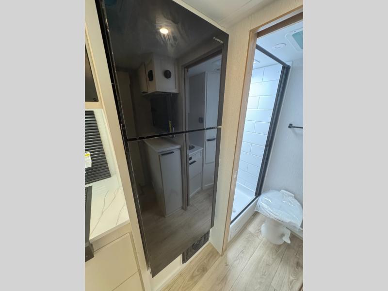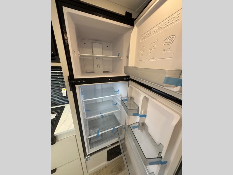 Come see just how accommodating this travel trailer can be! The two 32" x 74" twin beds up front have a nightstand in between them and a divider curtain to draw, plus they can convert into one 74" x 82" king-size bed. The 44" x 72" booth dinette slide can also convert into an extra sleeping space when you're not using it for meal time or playing games. Everyone can get squeaky clean in the full rear bathroom, and the wardrobe is a convenient place to store your linens and extra clothes. Grab a snack from the kitchen pantry or pop a bag of popcorn in the convection microwave then watch a movie on the Smart TV or head outdoors and relax underneath the power awning!