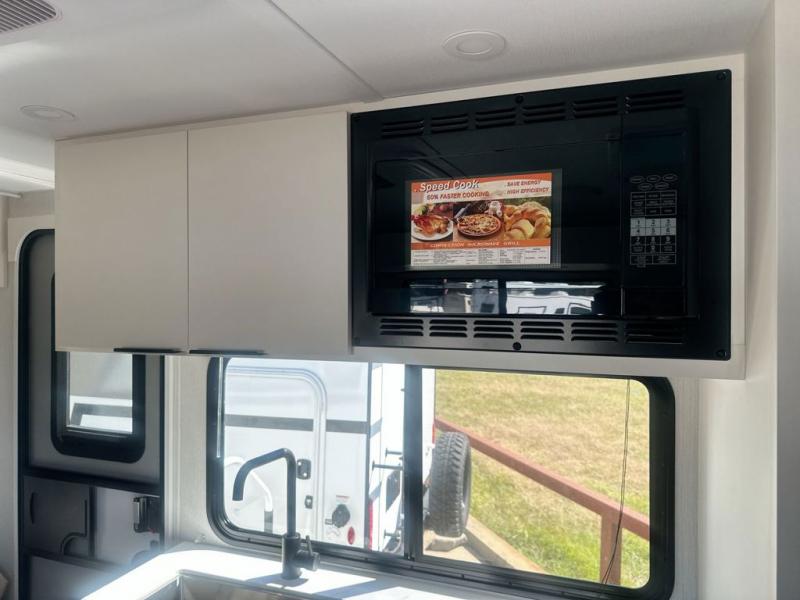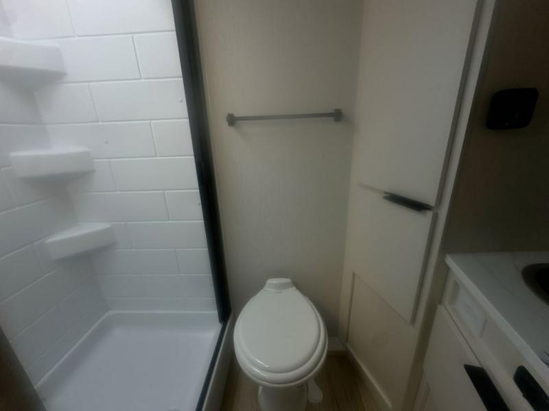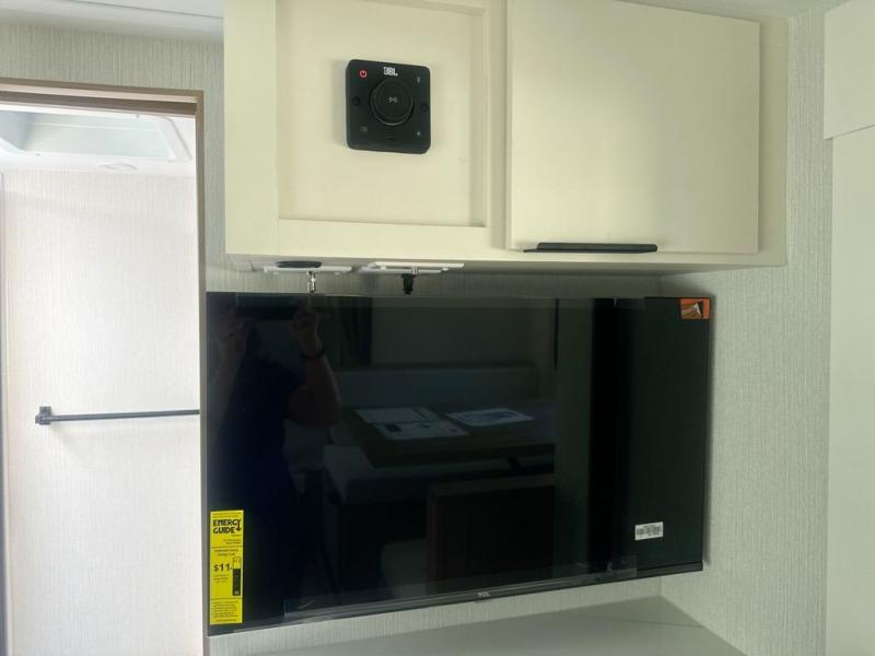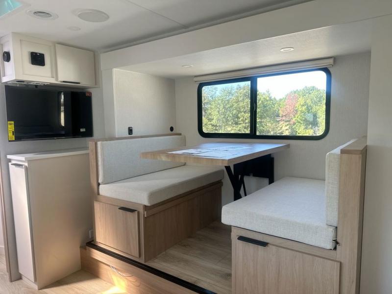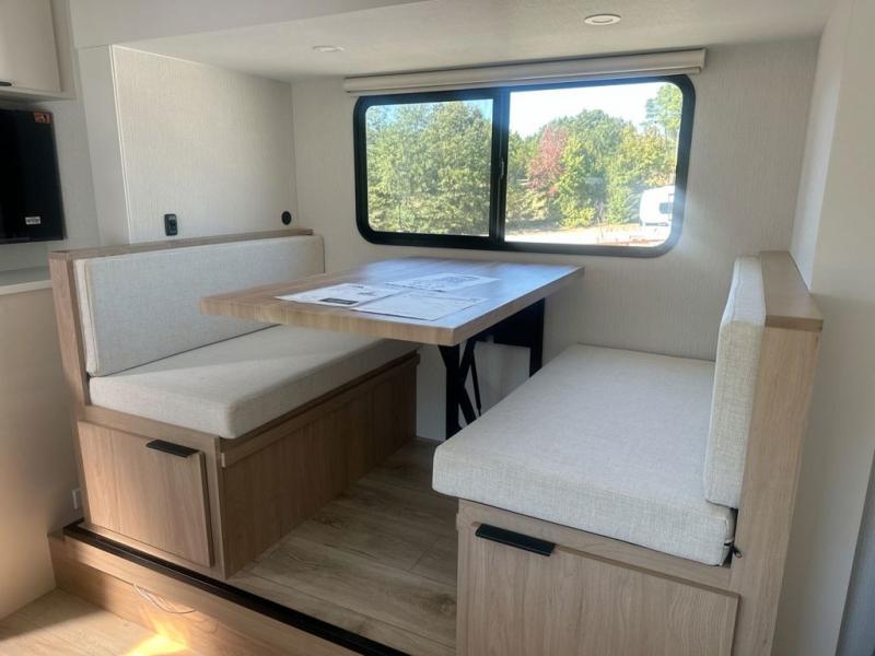 Come see just how accommodating this travel trailer can be! The two 32" x 74" twin beds up front have a nightstand in between them and a divider curtain to draw, plus they can convert into one 74" x 82" king-size bed. The 44" x 72" booth dinette slide can also convert into an extra sleeping space when you're not using it for meal time or playing games. Everyone can get squeaky clean in the full rear bathroom, and the wardrobe is a convenient place to store your linens and extra clothes. Grab a snack from the kitchen pantry or pop a bag of popcorn in the convection microwave then watch a movie on the Smart TV or head outdoors and relax underneath the power awning!