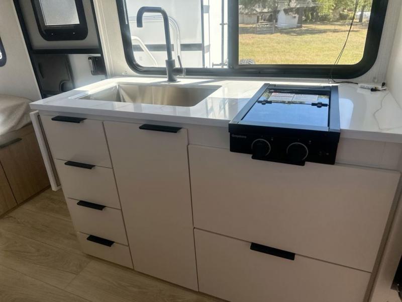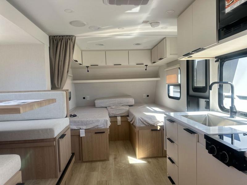 Start out on your boundless journey in one of these Winnebago Micro Minnie travel trailers! Towing is made simple with the 7' width to keep your Micro Minnie in your rear-view mirror. They don't lack in features either although they are compact in size. The spacious galley including a sink, refrigerator, a cooktop, and even a convection microwave oven allows you to cook without compromise. You will not only enjoy the entertainment found indoors with a Smart TV, a JBL premium sound system and Aura Cube high performance mechless media center, but outdoors you will also enjoy the JBL premium speakers and a power awning with LED lighting. Each model also comes with flexible exterior storage to make packing quick and easy, a 200-watt solar panel for off-grid camping, and Dexter TORFLEX torsion stub axles for smooth towing!