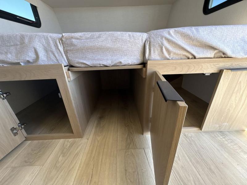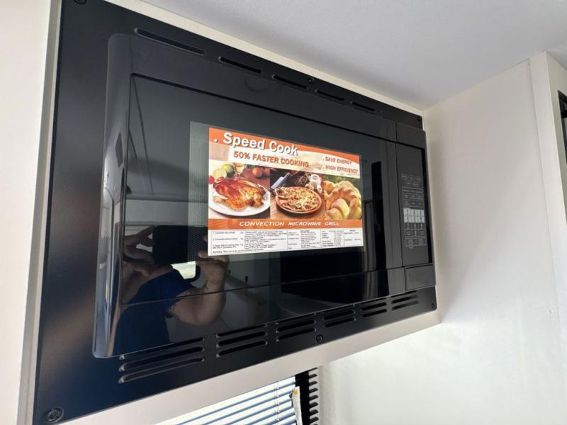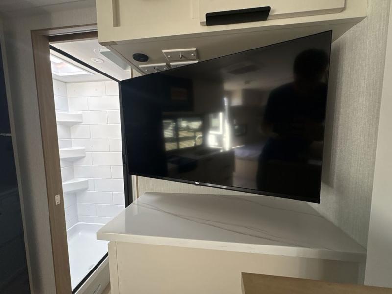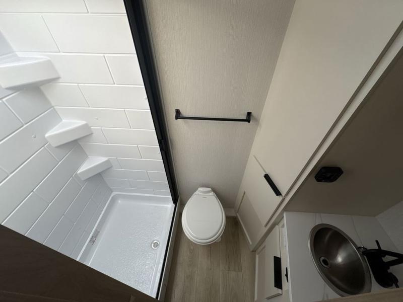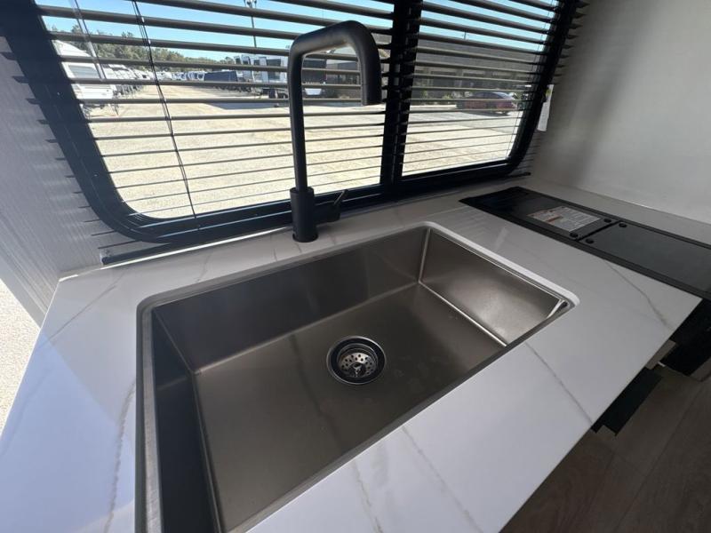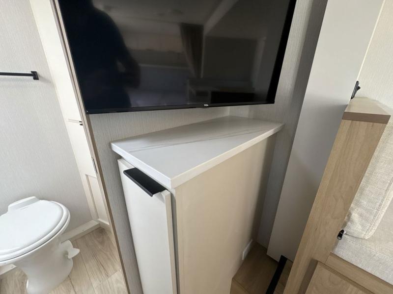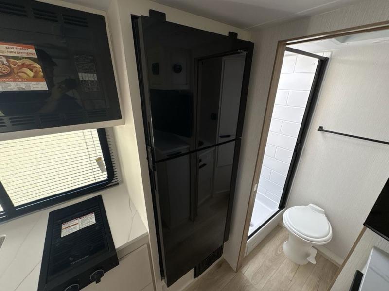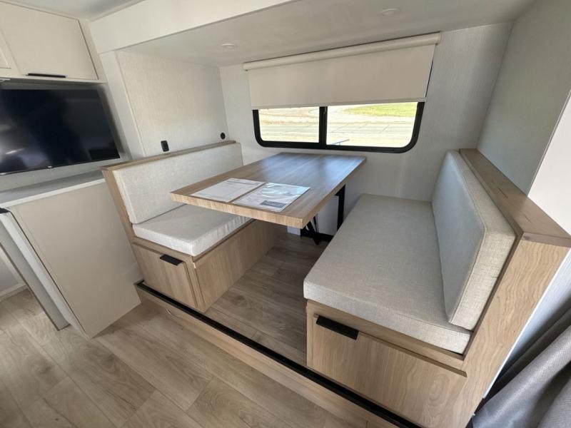 Come see just how accommodating this travel trailer can be! The two 32" x 74" twin beds up front have a nightstand in between them and a divider curtain to draw, plus they can convert into one 74" x 82" king-size bed. The 44" x 72" booth dinette slide can also convert into an extra sleeping space when you're not using it for meal time or playing games. Everyone can get squeaky clean in the full rear bathroom, and the wardrobe is a convenient place to store your linens and extra clothes. Grab a snack from the kitchen pantry or pop a bag of popcorn in the convection microwave then watch a movie on the Smart TV or head outdoors and relax underneath the power awning!