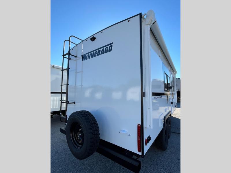 Start out on your boundless journey in one of these Winnebago Micro Minnie travel trailers! Towing is made simple with the 7' width to keep your Micro Minnie in your rear-view mirror. They don't lack in features either although they are compact in size. The spacious galley including a sink, refrigerator, a cooktop, and even a convection microwave oven allows you to cook without compromise. You will not only enjoy the entertainment found indoors with a Smart TV, a JBL premium sound system and Aura Cube high performance mechless media center, but outdoors you will also enjoy the JBL premium speakers and a power awning with LED lighting. Each model also comes with flexible exterior storage to make packing quick and easy, a 200-watt solar panel for off-grid camping, and Dexter TORFLEX torsion stub axles for smooth towing!