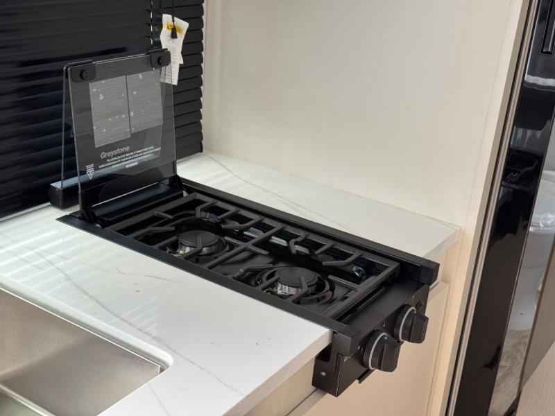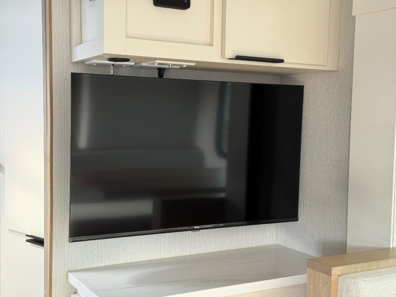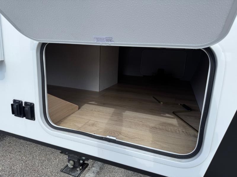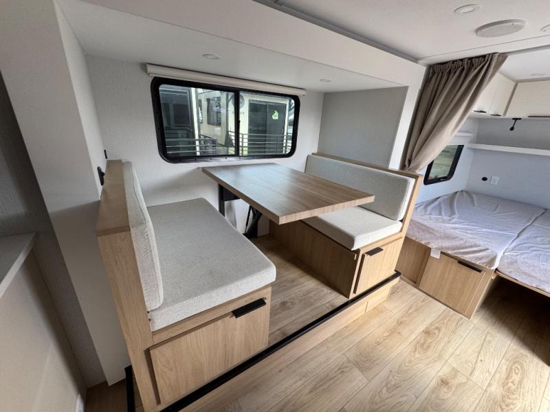 Come see just how accommodating this travel trailer can be! The two 32" x 74" twin beds up front have a nightstand in between them and a divider curtain to draw, plus they can convert into one 74" x 82" king-size bed. The 44" x 72" booth dinette slide can also convert into an extra sleeping space when you're not using it for meal time or playing games. Everyone can get squeaky clean in the full rear bathroom, and the wardrobe is a convenient place to store your linens and extra clothes. Grab a snack from the kitchen pantry or pop a bag of popcorn in the convection microwave then watch a movie on the Smart TV or head outdoors and relax underneath the power awning!