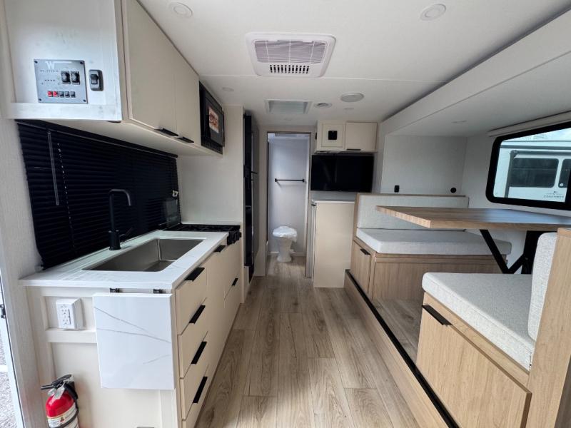 Start out on your boundless journey in one of these Winnebago Micro Minnie travel trailers! Towing is made simple with the 7' width to keep your Micro Minnie in your rear-view mirror. They don't lack in features either although they are compact in size. The spacious galley including a sink, refrigerator, a cooktop, and even a convection microwave oven allows you to cook without compromise. You will not only enjoy the entertainment found indoors with a Smart TV, a JBL premium sound system and Aura Cube high performance mechless media center, but outdoors you will also enjoy the JBL premium speakers and a power awning with LED lighting. Each model also comes with flexible exterior storage to make packing quick and easy, a 200-watt solar panel for off-grid camping, and Dexter TORFLEX torsion stub axles for smooth towing!