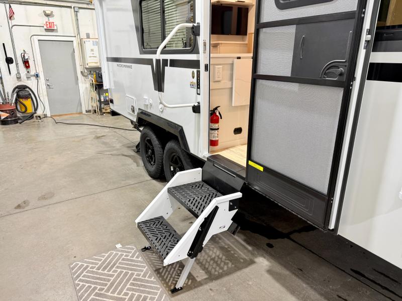 Start out on your boundless journey in one of these Winnebago Micro Minnie travel trailers! Towing is made simple with the 7' width to keep your Micro Minnie in your rear-view mirror. They don't lack in features either although they are compact in size. The spacious galley including a sink, refrigerator, a cooktop, and even a convection microwave oven allows you to cook without compromise. You will not only enjoy the entertainment found indoors with a Smart TV, a JBL premium sound system and Aura Cube high performance mechless media center, but outdoors you will also enjoy the JBL premium speakers and a power awning with LED lighting. Each model also comes with flexible exterior storage to make packing quick and easy, a 200-watt solar panel for off-grid camping, and Dexter TORFLEX torsion stub axles for smooth towing!
