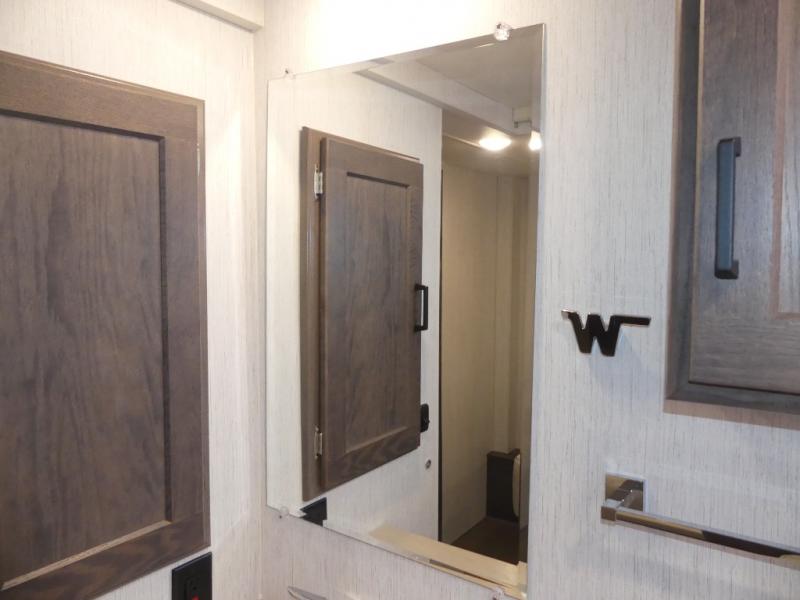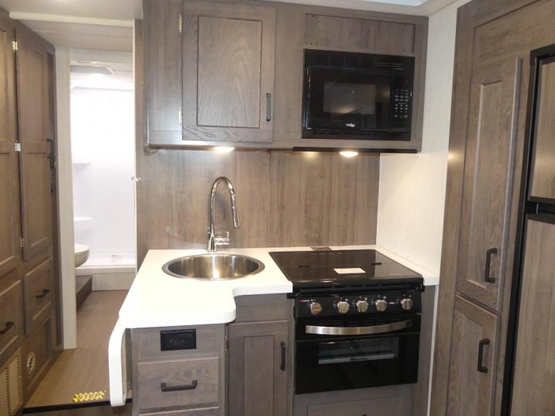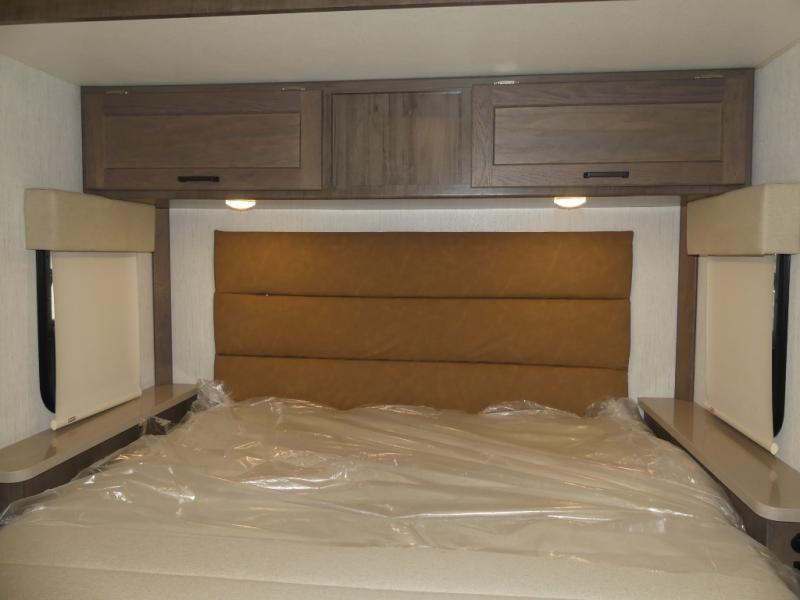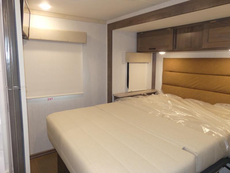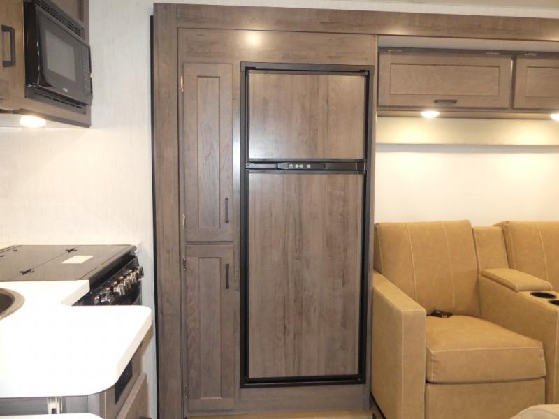 Time spent in this spacious coach will be time well spent! Whether you're dining around the U-shaped dinette, relaxing on the sofa, or visiting outdoors under the power awning, you're sure to have a great time. The cab-over bunk and the living room furniture will provide sleeping space for guests. A three burner range and a microwave oven will let you prepare your best meals while you're on the road, plus there is an 8 cu. ft. 2-way large double door refrigerator/freezer and pantry for food storage. After a long day outdoors exploring trails, you can relax in the private bedroom on the RV queen bed slide. There are dual bedside nightstands for your things, a sliding door for more space, plus quick access into the rear corner full bath!