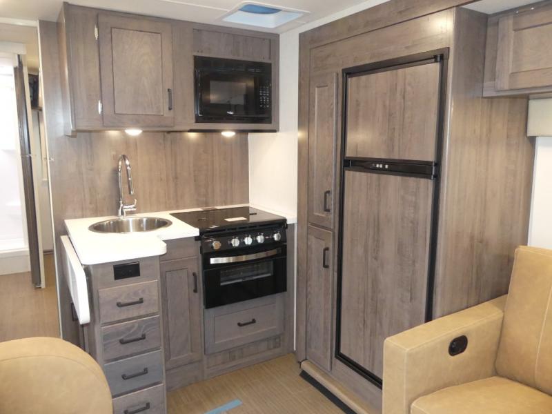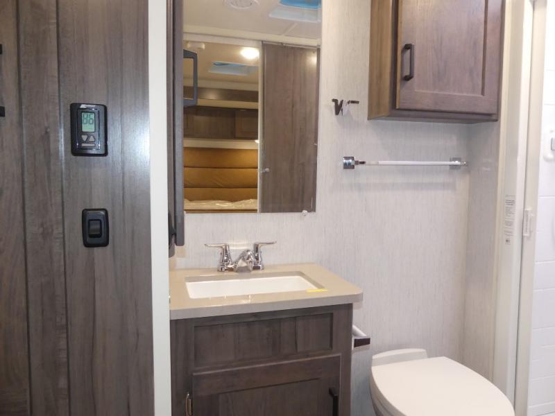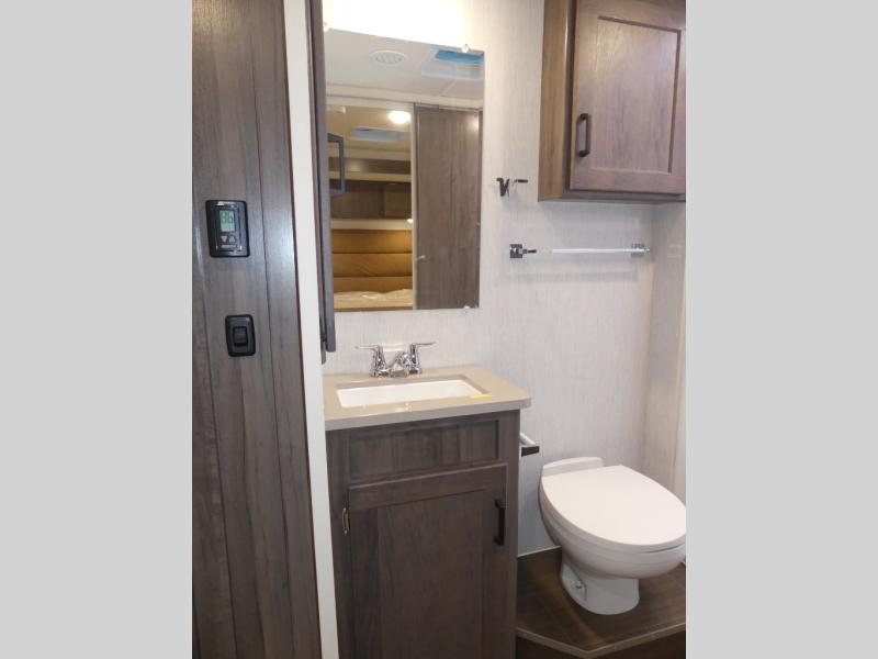 Explore the beautiful national parks with the Minnie Winnie NPF Limited Edition Class A gas motorhome by Winnebago. The compact build is designed to fit most park campsites, and you're sure to turn heads with the exclusive National Park themed deluxe exterior graphics. You will also appreciate the large lighted trunk storage compartment for your camp gear, a powered awning with LED lighting, plus 240-watts of solar power for off-grid capabilities. You can stay connected wherever you roam with the radio/review monitor system that includes a 10" multi-function touchscreen monitor and rear camera, Bluetooth, and more! There is space for everyone inside to relax in comfort, including sleeping for six, and the galley kitchen will let you create your best home-cooked meals. This coach also includes vinyl flooring throughout, Corian solid surface countertops, plus a flexible showerhead and a bath skylight to name a few comforts!