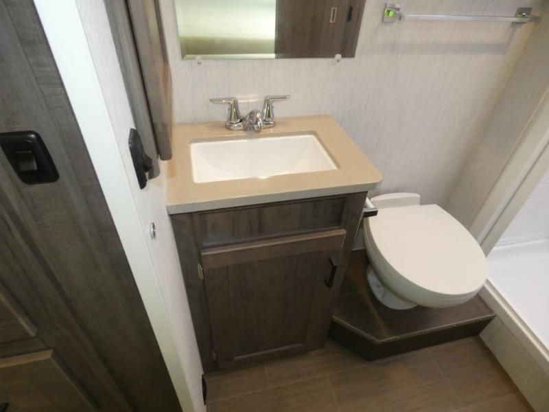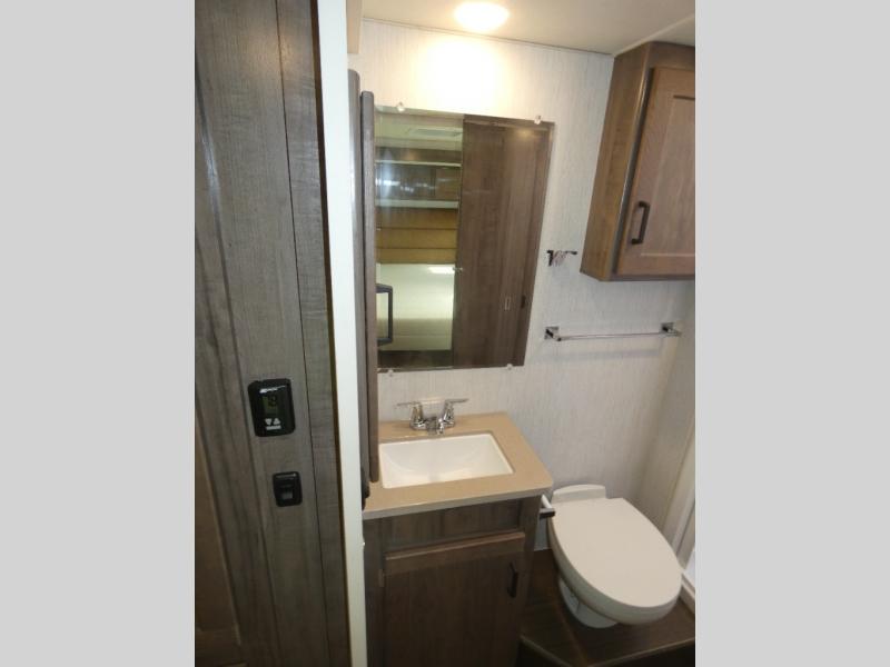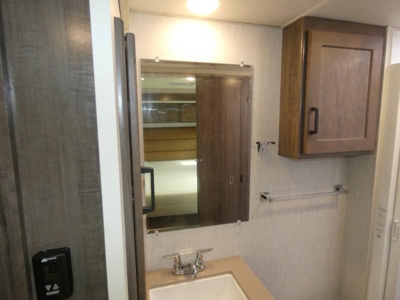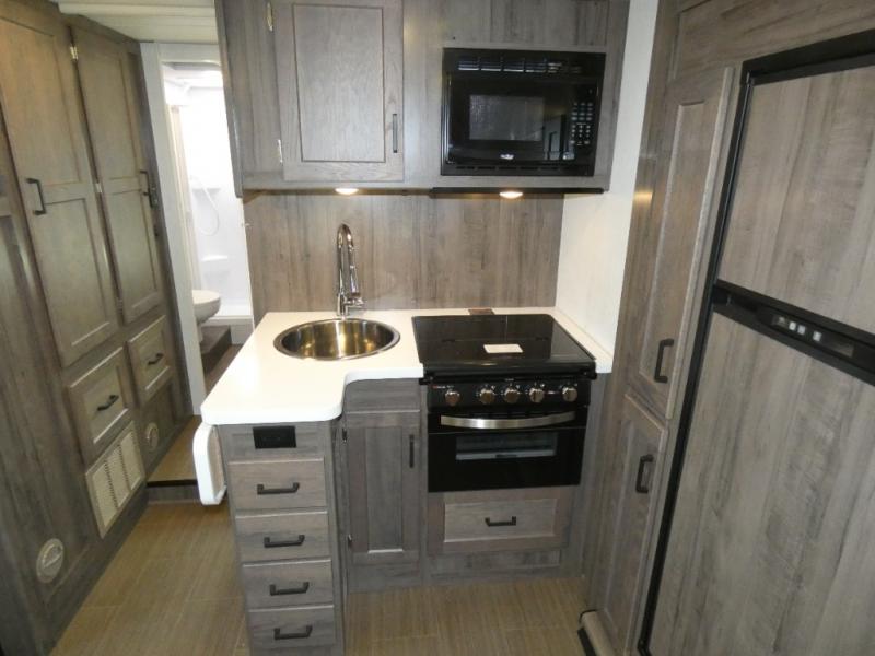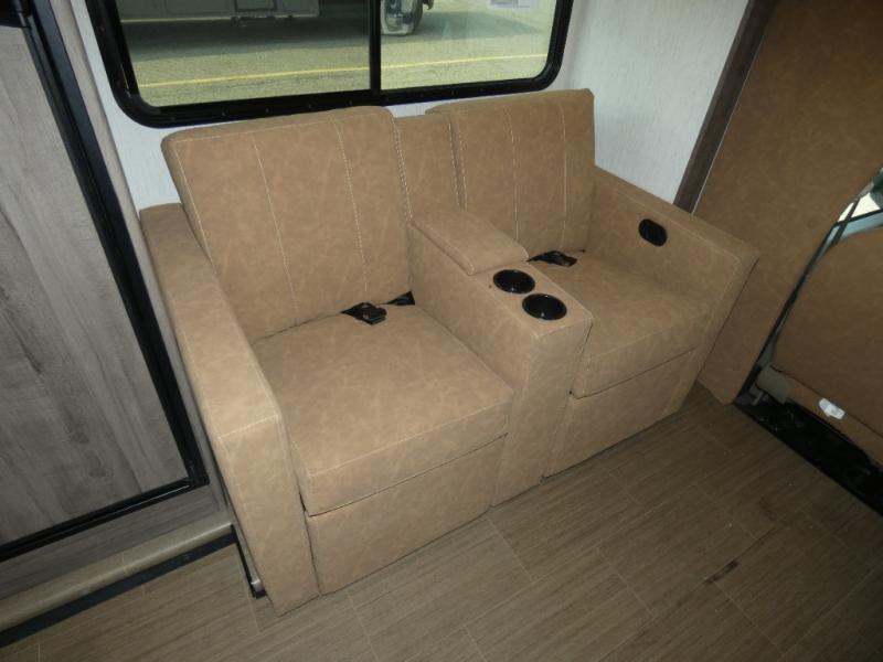 Time spent in this spacious coach will be time well spent! Whether you're dining around the U-shaped dinette, relaxing on the sofa bed, or visiting outdoors under the power awning, you're sure to have a great time. A three burner range and a microwave oven will let you prepare your best meals while you're on the road, plus there is an 8 cu. ft. 2-way large double door refrigerator/freezer and pantry for food storage. After a long day outdoors exploring trails, you can relax in the private bedroom on the RV queen bed slide. There are dual bedside nightstands for your things, a sliding door for more space, plus quick access into the rear corner full bath!