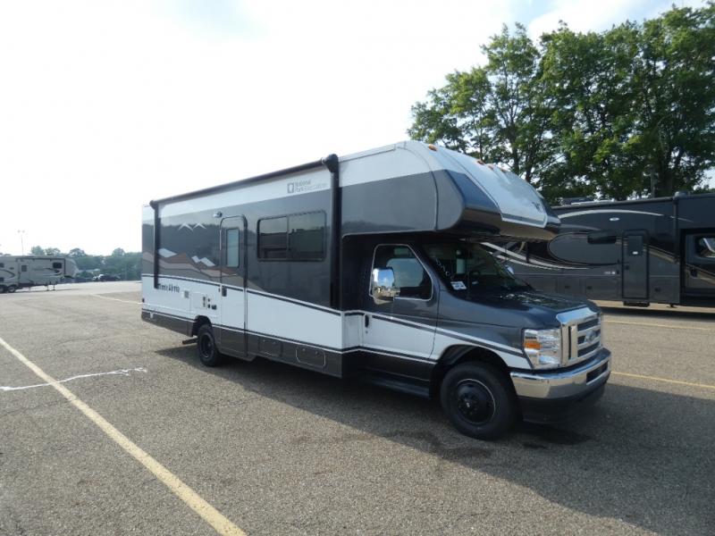 Explore the beautiful national parks with the Minnie Winnie NPF Limited Edition Class A gas motorhome by Winnebago. The compact build is designed to fit most park campsites, and you're sure to turn heads with the exclusive National Park themed deluxe exterior graphics. You will also appreciate the large lighted trunk storage compartment for your camp gear, a powered awning with LED lighting, plus 240-watts of solar power for off-grid capabilities. You can stay connected wherever you roam with the radio/review monitor system that includes a 10" multi-function touchscreen monitor and rear camera, Bluetooth, and more! This coach also includes vinyl flooring throughout, Corian solid surface countertops, plus a flexible showerhead and a bath skylight to name a few comforts!