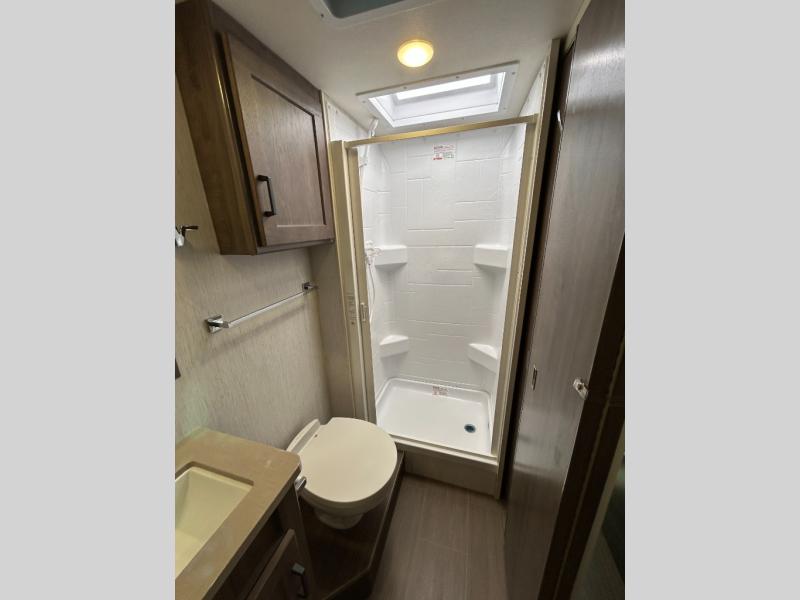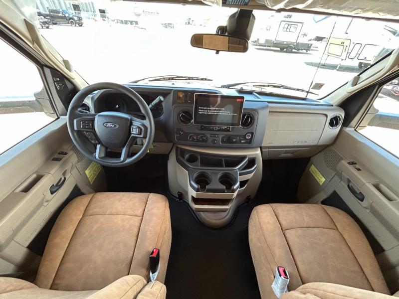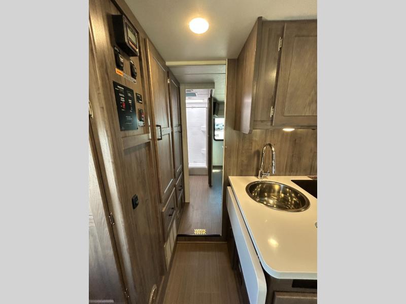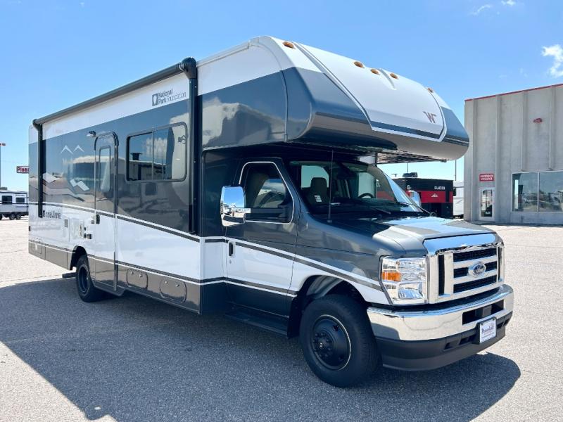Explore the beautiful national parks with the Minnie Winnie NPF Limited Edition Class A gas motorhome by Winnebago. The compact build is designed to fit most park campsites, and you're sure to turn heads with the exclusive National Park themed deluxe exterior graphics. You will also appreciate the large lighted trunk storage compartment for your camp gear, a powered awning with LED lighting, plus 240-watts of solar power for off-grid capabilities. You can stay connected wherever you roam with the radio/review monitor system that includes a 10" multi-function touchscreen monitor and rear camera, Bluetooth, and more! There is space for everyone inside to relax in comfort, including sleeping for six, and the galley kitchen will let you create your best home-cooked meals. This coach also includes vinyl flooring throughout, Corian solid surface countertops, plus a flexible showerhead and a bath skylight to name a few comforts!