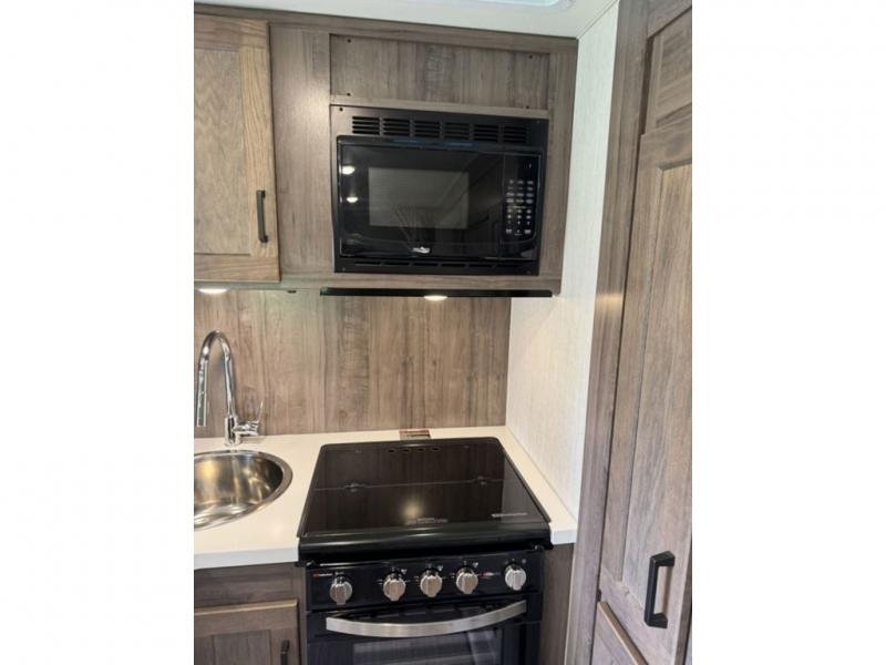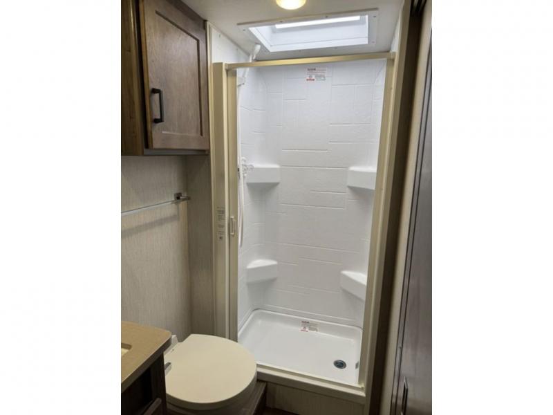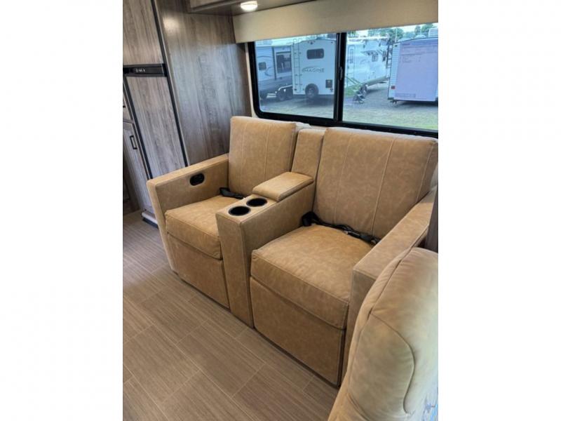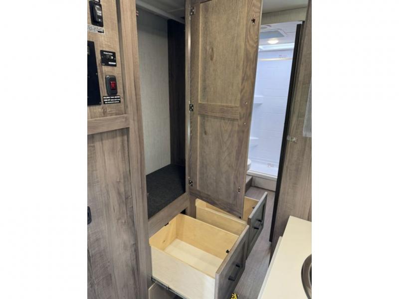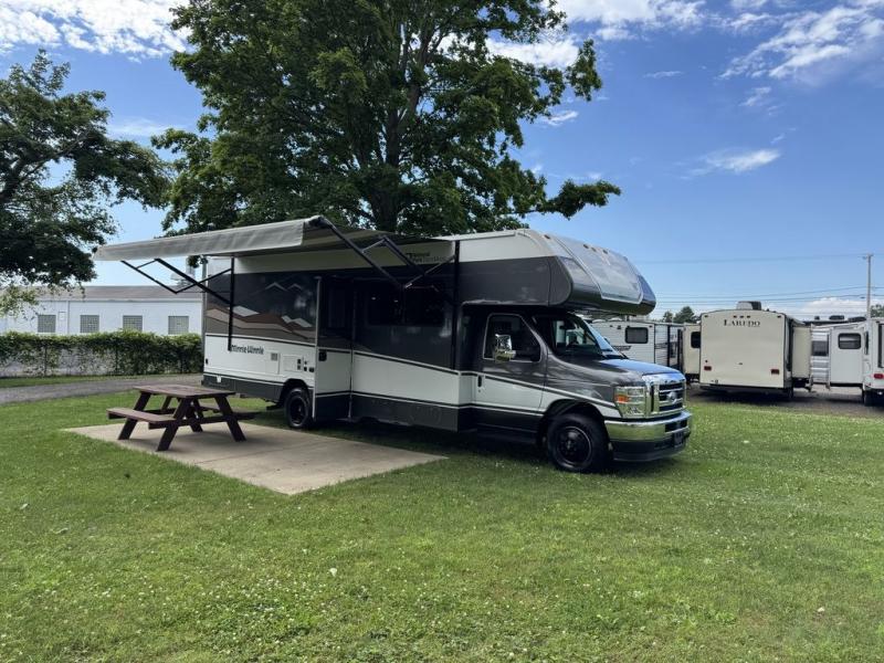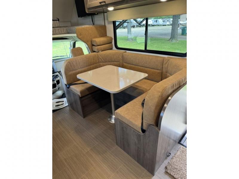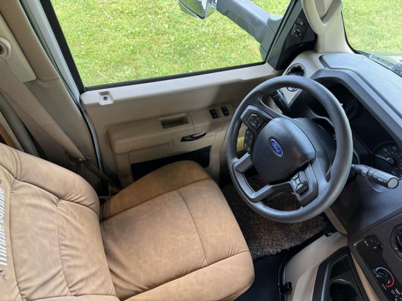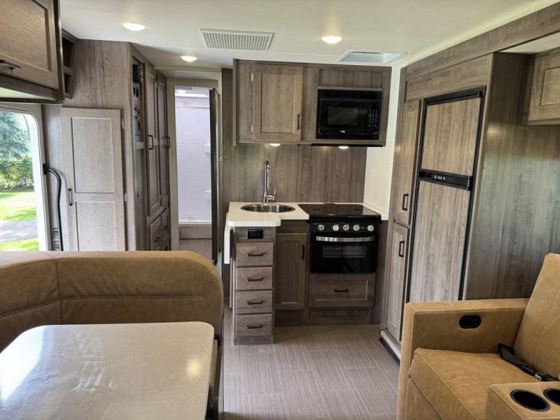 Explore the beautiful national parks with the Minnie Winnie NPF Limited Edition Class A gas motorhome by Winnebago. The compact build is designed to fit most park campsites, and you're sure to turn heads with the exclusive National Park themed deluxe exterior graphics. You will also appreciate the large lighted trunk storage compartment for your camp gear, a powered awning with LED lighting, plus 240-watts of solar power for off-grid capabilities. You can stay connected wherever you roam with the radio/review monitor system that includes a 10" multi-function touchscreen monitor and rear camera, Bluetooth, and more! There is space for everyone inside to relax in comfort, including sleeping for six, and the galley kitchen will let you create your best home-cooked meals. This coach also includes vinyl flooring throughout, Corian solid surface countertops, plus a flexible showerhead and a bath skylight to name a few comforts!