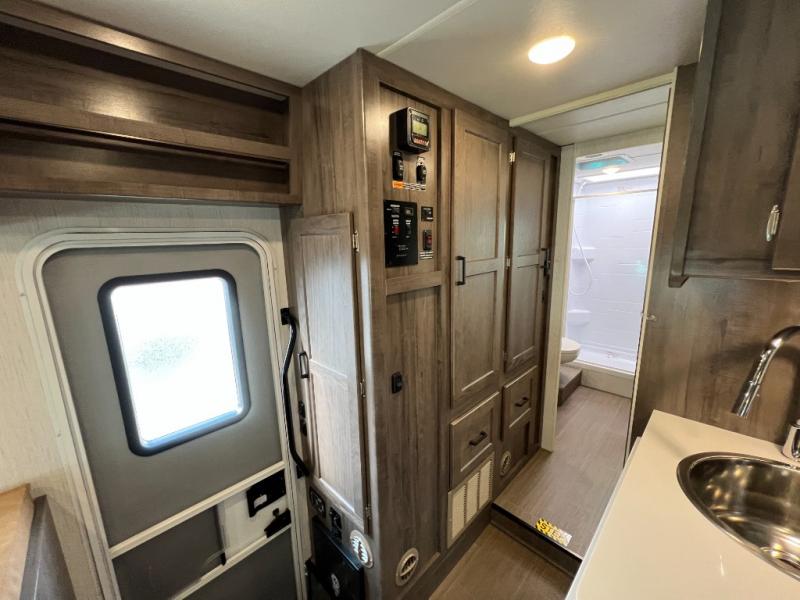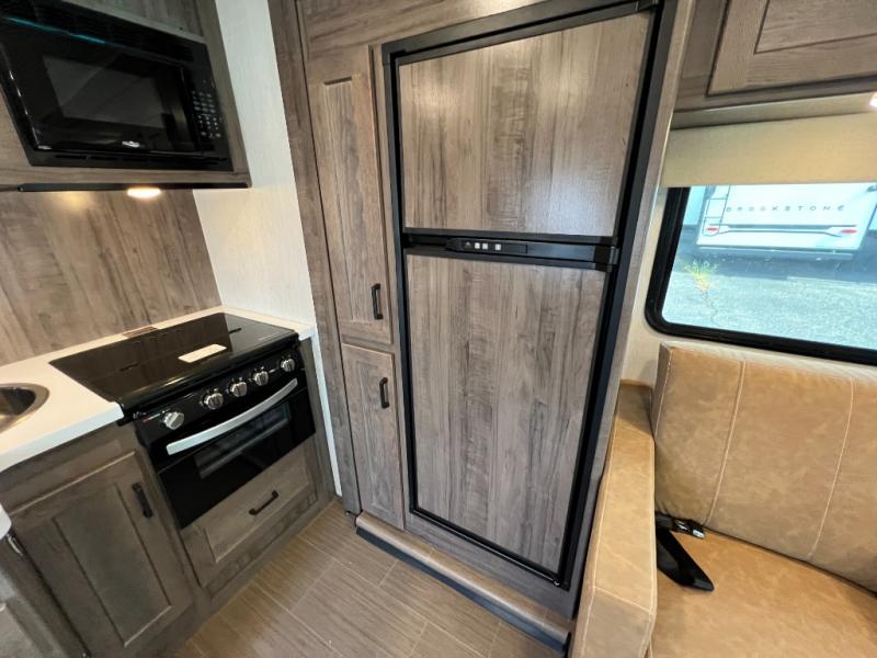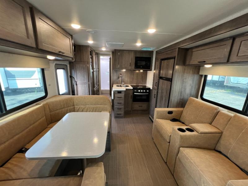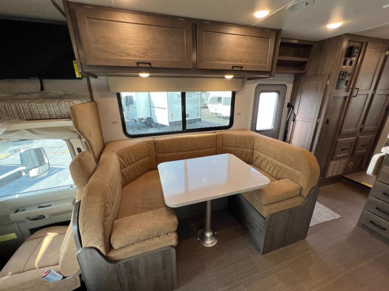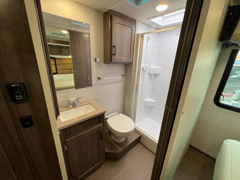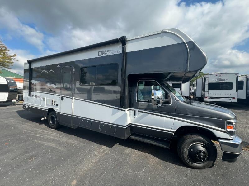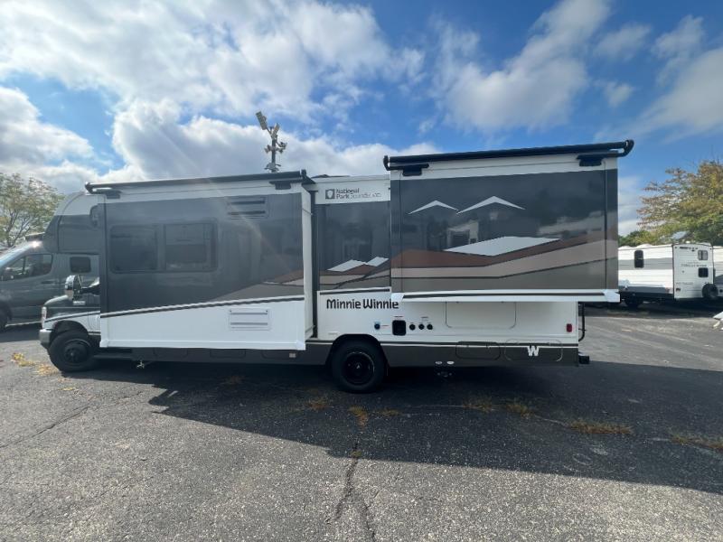 Explore the beautiful national parks with the Minnie Winnie NPF Limited Edition Class A gas motorhome by Winnebago. The compact build is designed to fit most park campsites, and you're sure to turn heads with the exclusive National Park themed deluxe exterior graphics. You will also appreciate the large lighted trunk storage compartment for your camp gear, a powered awning with LED lighting, plus 240-watts of solar power for off-grid capabilities. You can stay connected wherever you roam with the radio/review monitor system that includes a 10" multi-function touchscreen monitor and rear camera, Bluetooth, and more! There is space for everyone inside to relax in comfort, including sleeping for six, and the galley kitchen will let you create your best home-cooked meals. This coach also includes vinyl flooring throughout, Corian solid surface countertops, plus a flexible showerhead and a bath skylight to name a few comforts!