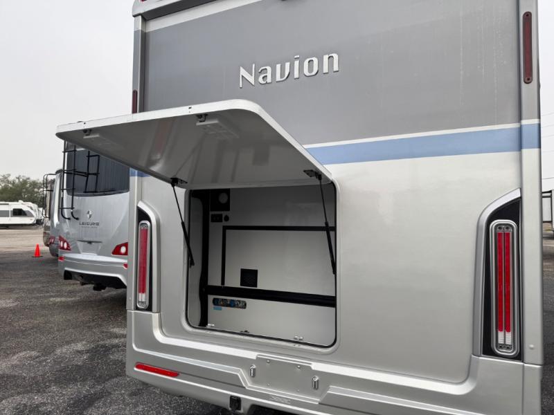 With each Navion Class C diesel motorhome by Winnebago, you can extend your trips off grid with the two 120W solar panels, one 320-amp-hour 12V Lithionics lithium battery, 2,000W inverter, plus the dedicated 280-amp second alternator to charge the coach batteries. An optional RVMP 3800W LP generator is available for even more power features. The optional generator is not available with the Generator Replacement Package; see dealer for more details! The Navion is built on a Mercedes-Benz RWD Sprinter chassis with optional AWD, and the MBUX touchscreen infotainment system has intelligent voice control, navigation, a Wi-Fi hotspot, and more! The interior offers luxury space and simple solutions for storage, plus it also has vinyl flooring and laminate countertops for easy clean-up.
