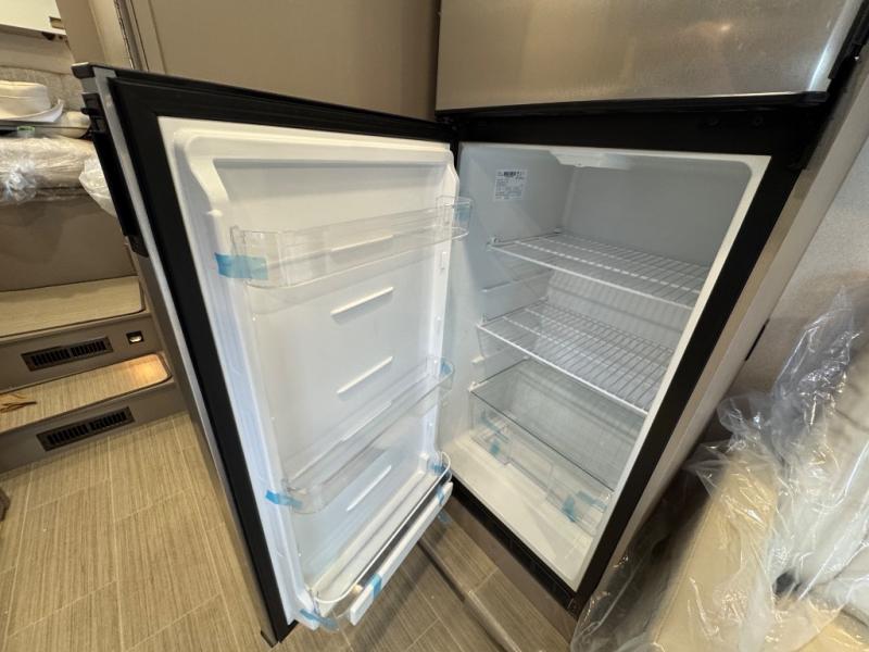 This is the perfect coach to travel with your honey or hiking buddy since there are two 32" x 76" twin beds in the back that can convert to a king-size bed if you choose! And the TrueComfort+ sofa with a movable pedestal table plus the cabover bunk will provide additional sleeping space. You can choose the optional low profile front cap with storage if you do not need the added sleeping space. There is a 25" x 30" shower across the hall from a private toilet and sink so two people can freshen up at once. You will also be able to create meals each day since there is a two-burner cooktop and convection microwave, and the 12V refrigerator will keep cold items fresh!