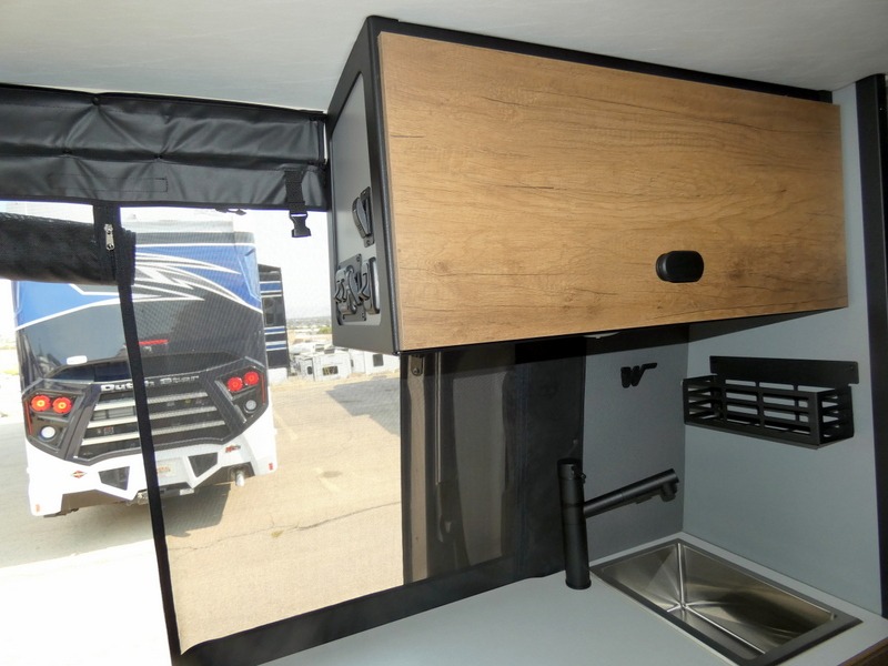 Looking for adventure yet not sure which road you'll take? This camper van offers the outdoor enthusiast a way to venture the unknown. Once at your destination, you can easily set up the interior including a power lift bed in the rear. The cab seats swivel around and there is a bench seat with adjustable table for easy dining opposite. There is even a fold-down outside table to dine outdoors if you want. You will find storage throughout including in the gear garage below the bed where you can store your hiking sticks and backpacks. The cook will have a portable single induction range top, a stainless-steel sink, and a counter extension for more prep space plus a refrigerator below the counter. There is also a wet bath to stay clean and refreshed!