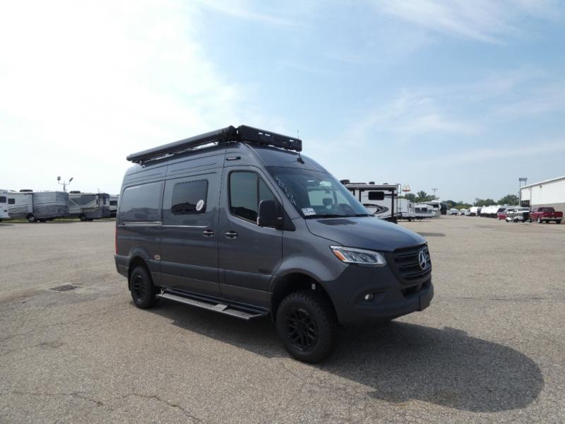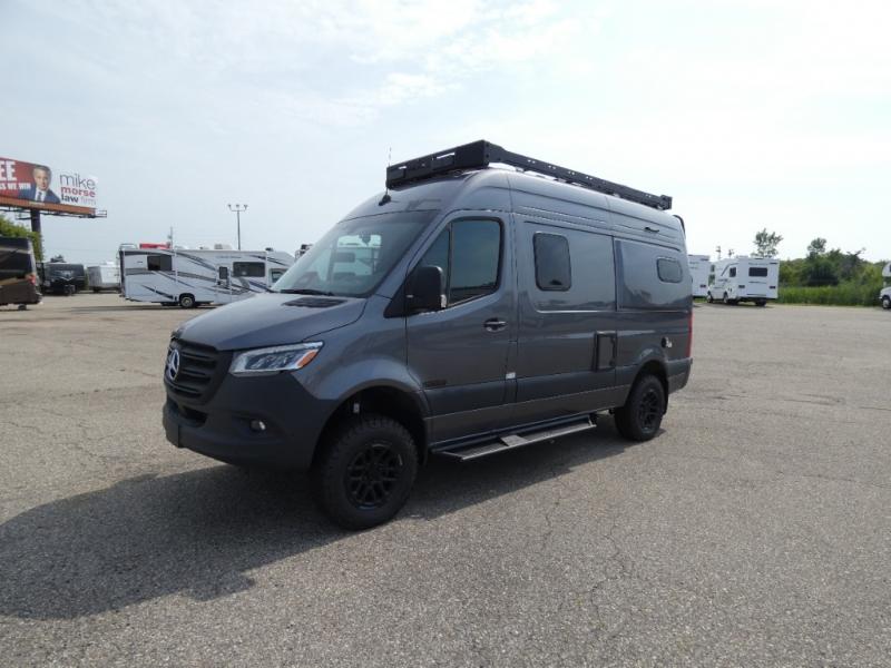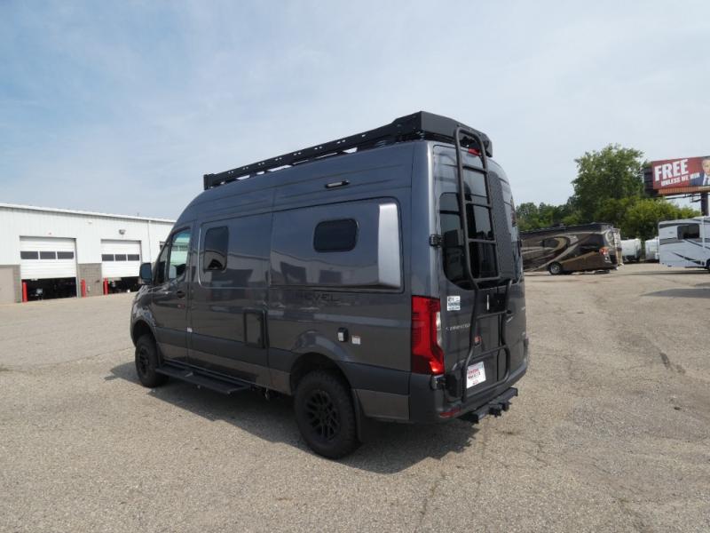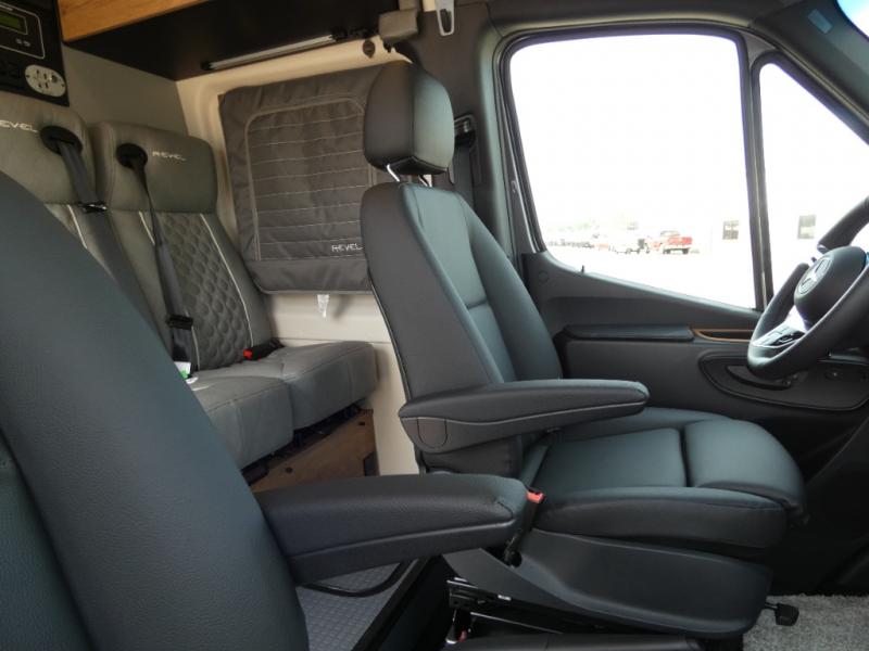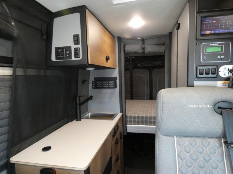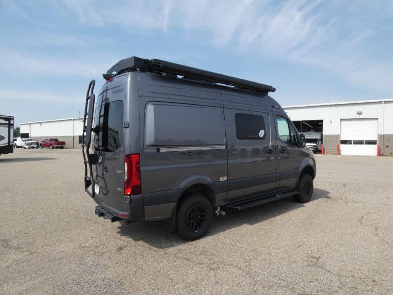 The Revel Class B diesel motorhome allows you to venture off-road thanks to the AWD Sprinter chassis with 2.0L high-output turbo-diesel 4-cylinder under the hood. The Winnebago Power MAX system (8.4kWh Lithionics lithium-ion battery with dual alternator charging capability) and Power Hub Pro which is an exclusive 5-in1 system that delivers off-grid power like nothing before allowing you to stay off-grid for up to 7 days. The interior provides a comfortable and relaxing space featuring modern decor including an updated galley with compression-latch cabinets, a new wall-mounted table, an innovative wet bath, plus a power lift bed with WinnSleep® mattress technology, and the gear garage below the bed features L-track bases for secure and flexible storage, plus cabinet storage and more.