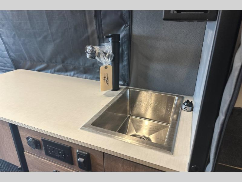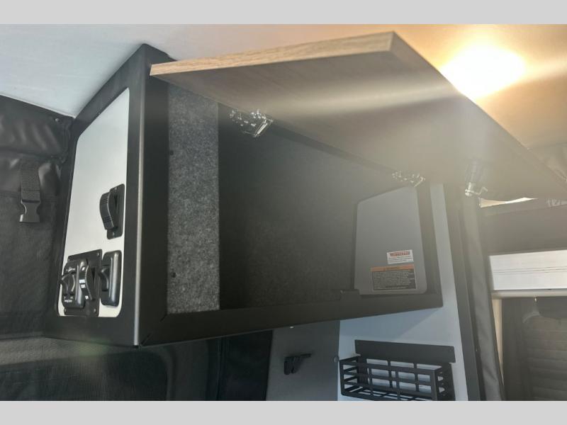 Looking for adventure yet not sure which road you'll take? This camper van offers the outdoor enthusiast a way to venture the unknown. Once at your destination, you can easily set up the interior including a power lift bed in the rear. The cab seats swivel around and there is a bench seat with adjustable table for easy dining opposite. There is even a fold-down outside table to dine outdoors if you want. You will find storage throughout including in the gear garage below the bed where you can store your hiking sticks and backpacks. The cook will have a portable single induction range top, a stainless-steel sink, and a counter extension for more prep space plus a refrigerator below the counter. There is also a wet bath to stay clean and refreshed!