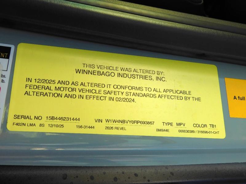New 2026 Winnebago Revel 44E Motor Home Class B - Diesel